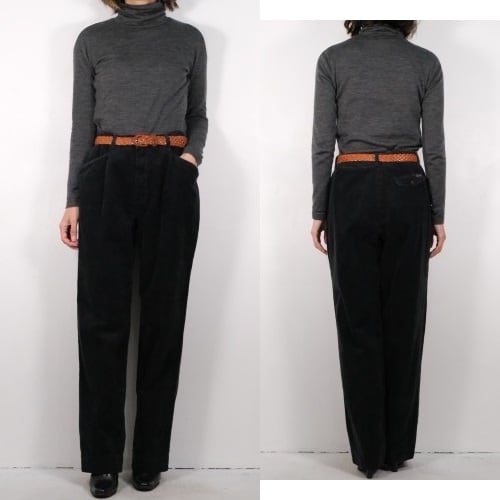90's black corduroy tucked Pants