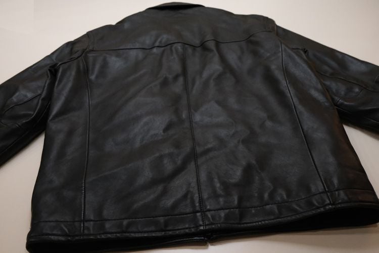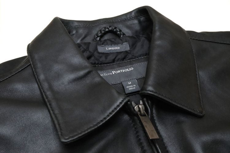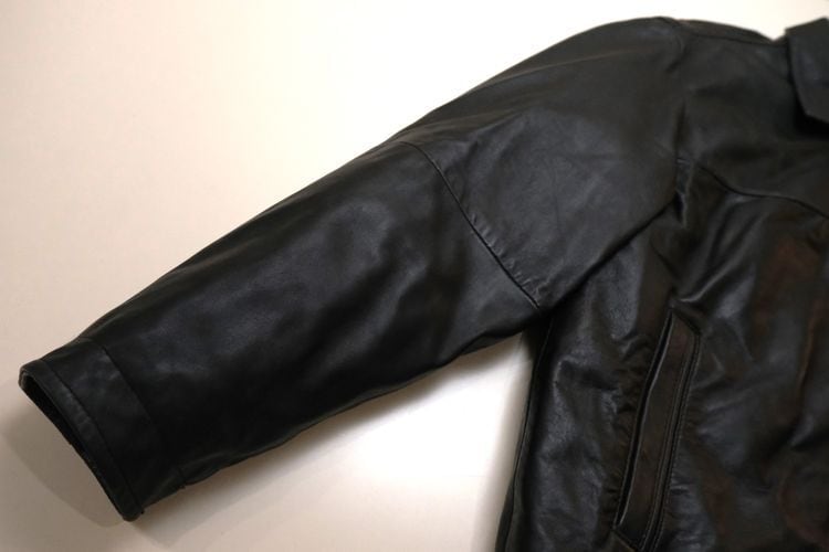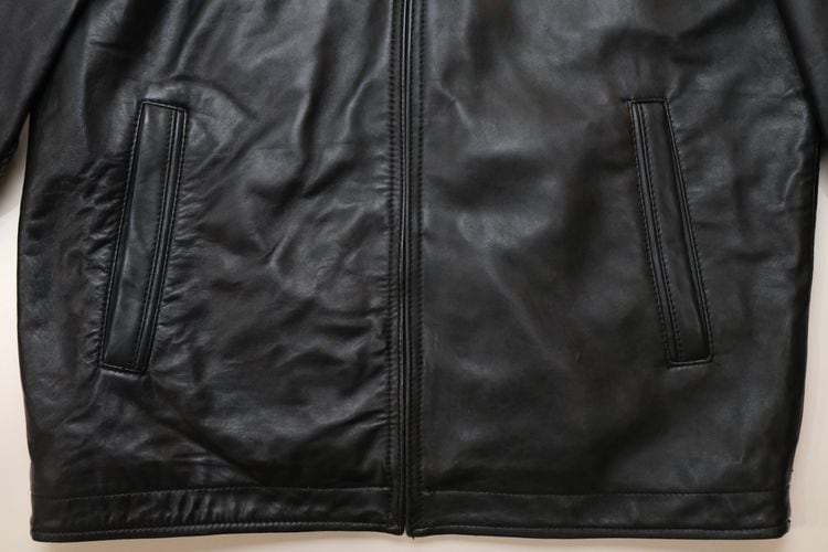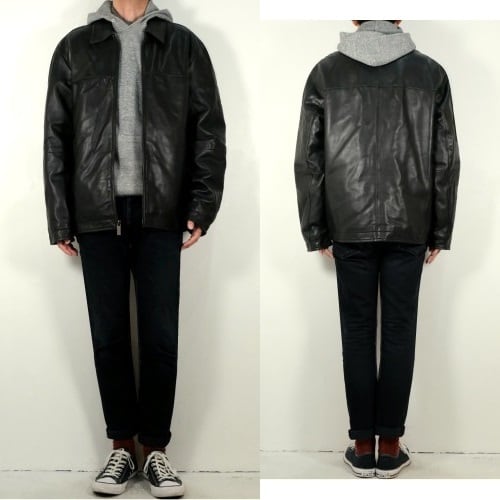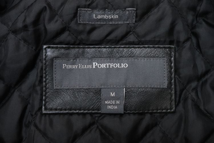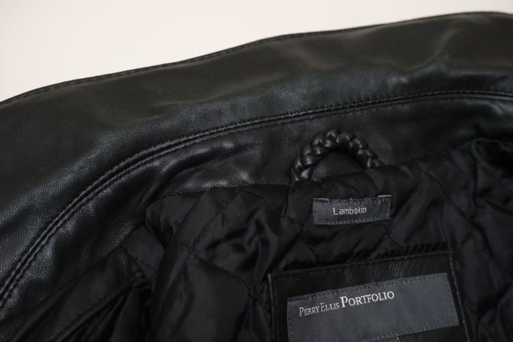 1978年に自身の名を冠し創設されたニューヨーク出身のファッション・デザイナー"PERRY ELLIS"『ペリー・エリス』の上品なライン"PORTFOLIO"から90年代頃と思われるレザー・ジャケット。きめ細やかで手に吸い付くような質感を持つラム・レザーを使用し、単色ブラックの色味と自然な光沢の表情に大人な雰囲気を感じるアイテムです。ざっくりとした着用に適したボリュームあるシルエット、ジップアップ・フロント、小ぶりなカラー、スラッシュ・ポケット、内側に袖口までキルティング加工の施されたポリエステル・フィリングが入る温かな着心地も魅力となっています。着用の上で問題となるダメージや汚れはございませんが、小さなスレの点在するUSEDコンディションですのでご理解の上ご検討ください。さらっと羽織るだけで男らしい無骨な雰囲気を演出でき、ジップを閉めずにフーディーなどと合わせたコーディネートもおすすめです。※発送の際は畳んでの包装となりますのでご了承ください。