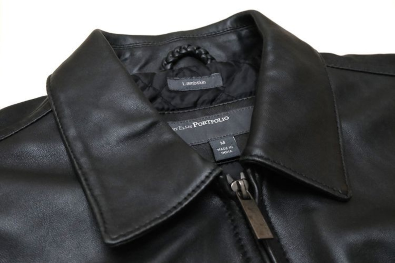 90's PERRY ELLIS PORTFOLIO black lambskin zip-up Jacket