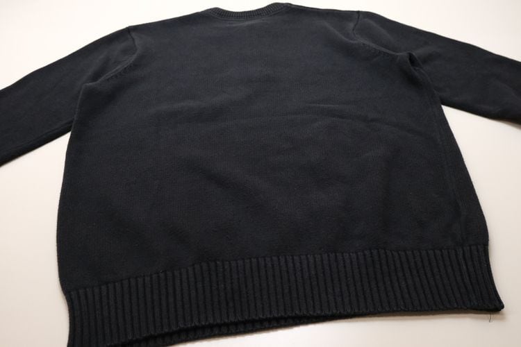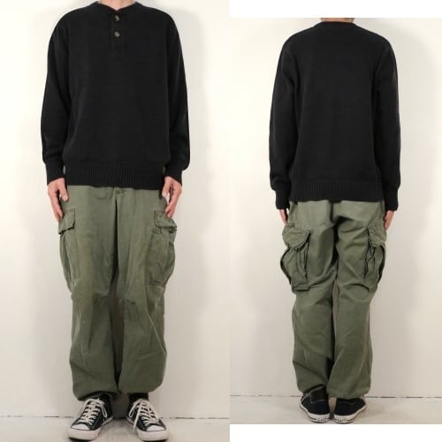1920年にワシントン州シアトルで自身の名を冠し創設された"EDDIE BAUER"『エディー・バウアー』からセーター(2014/FALL)。ミドルゲージでしっかりと編み立てられた100%コットンを使用し、ブラックの色味にシンプルでスマートな雰囲気を感じるアイテムです。肩幅に対してやや身幅の広いシルエット、2つボタンのヘンリーネック、リブ編みで切り替えられた首まわりと裾口、袖口が全体を引き締め、ミニマルながらも立体感のある佇まいに仕上がっています。着用の上で問題となるダメージや汚れはございませんが、全体的にコットン・ニット特有の毛羽立ちのあるUSED品ですのでご理解の上ご検討ください。幅広いボトムスに合わせやすいシンプルなデザインとブラックの色味がたいへん良く、コットン・ニットらしい程よい重みで身体のラインにくったりと馴染む着心地を楽しんでいただけます。