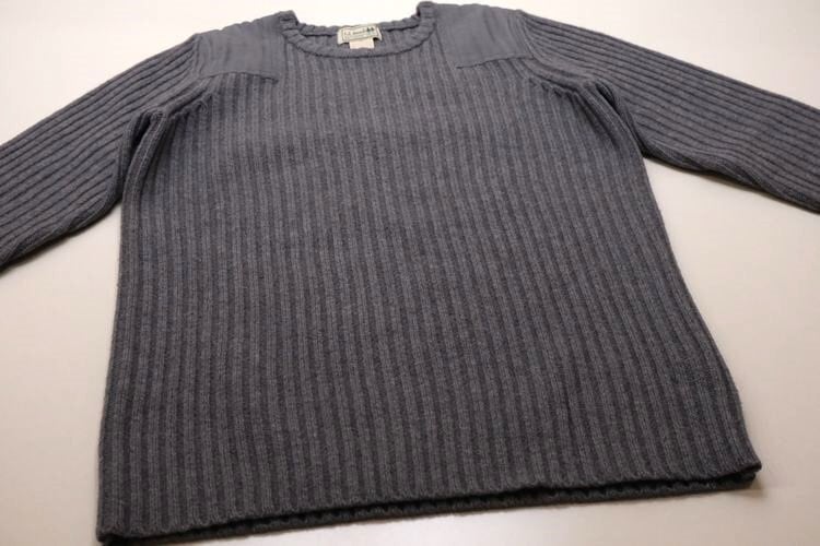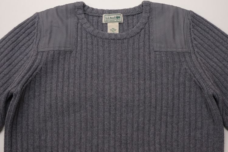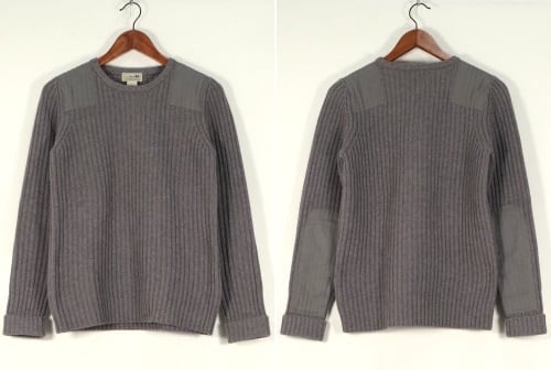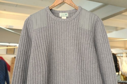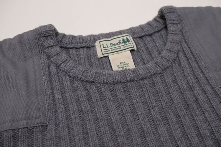 1912年"Leon Leonwood Bean"によりメイン州フリーポートで創業された"L.L.Bean"より、グレー色コマンドセーター。変わらないデザインで永く愛されているロングセラーアイテムです。クルーネックのリブ編みニットに、肩と肘下のパッチが特徴的なミリタリースタイルのデザイン。100%メリノラムウールのニットは厚みがあり温かく、柔らかな風合いとシルエットを保つコシの強さが魅力となっています。コンディションとして多少の着用感があり、パッチ部分にアタリなど見られますのでUSED品とご確認の上ご検討ください。一枚でもインナー使いにも使い勝手良く、定番アイテムとして活躍してくれます。