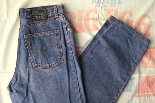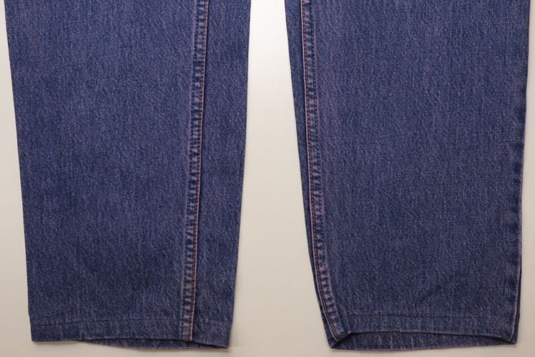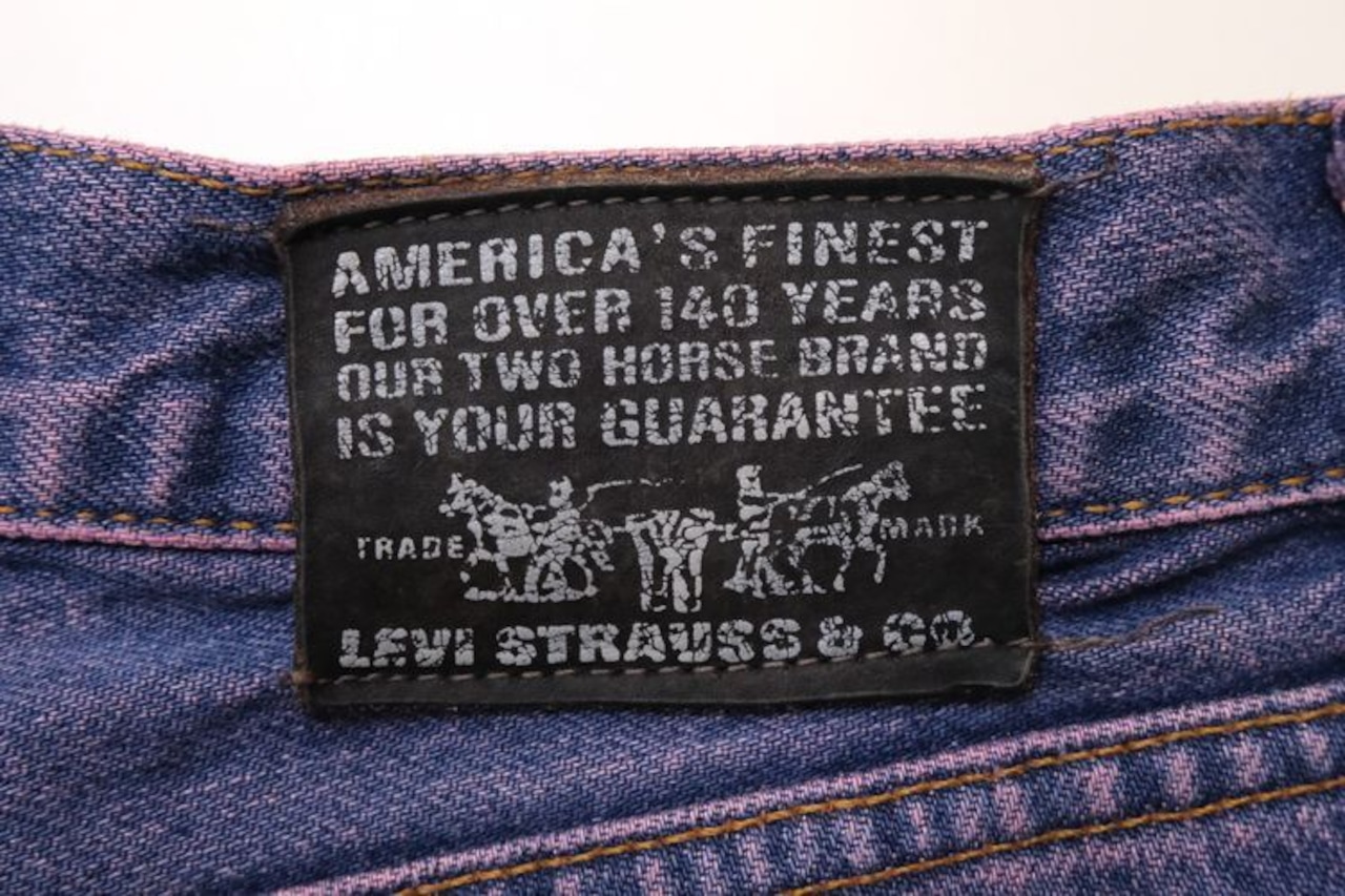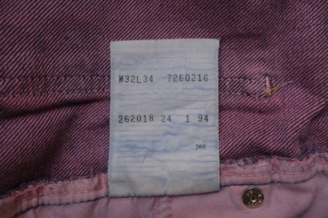 1853年"Levi Strauss"によりサンフランシスコで設立された"Levi's"からヨーロッパ・ラインの"Levi's 726"デニム・パンツ。厚手でしっかりとした100%コットン・ツイルを使用し、オリジナルで後染めされたマゼンタとライトインディゴが混じり合い生まれたパープルの色味が個性的な仕上がりのアイテムです。デニム・パンツの代表格といえる5ポケット、深い股上に丸みを帯びた腰まわりのライン、程よい広さのワタリから裾口にかけてテーパードを効かせたシルエット『140年以上の歴史を掲げたレザー・パッチ』『オレンジ・タブ』『トップボタン裏266/ベルギー』『品番印字: 194』(1994年1週目製造)のディテールとなっています。着用の上で問題となるダメージや汚れはなく、偏った色落ちのない良いコンディションですが着用感のあるUSED品ですのでご理解の上ご検討ください。インディゴとはまたひと味違った雰囲気に魅力があり、膝などの部分的な色落ちがないためこれからご自身の身体に沿った色落ちを楽しんでいただけます。