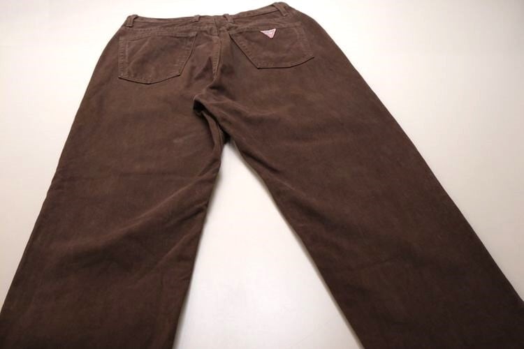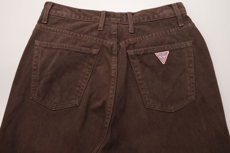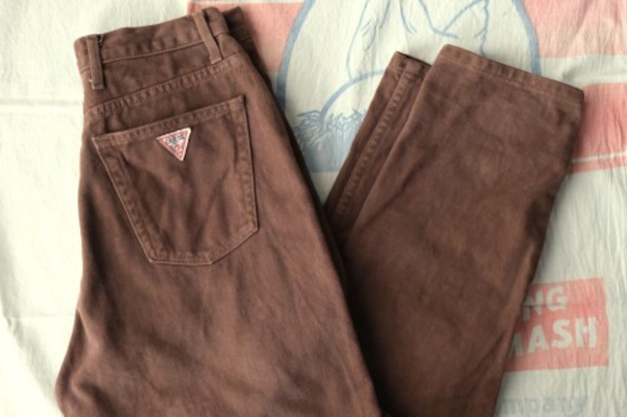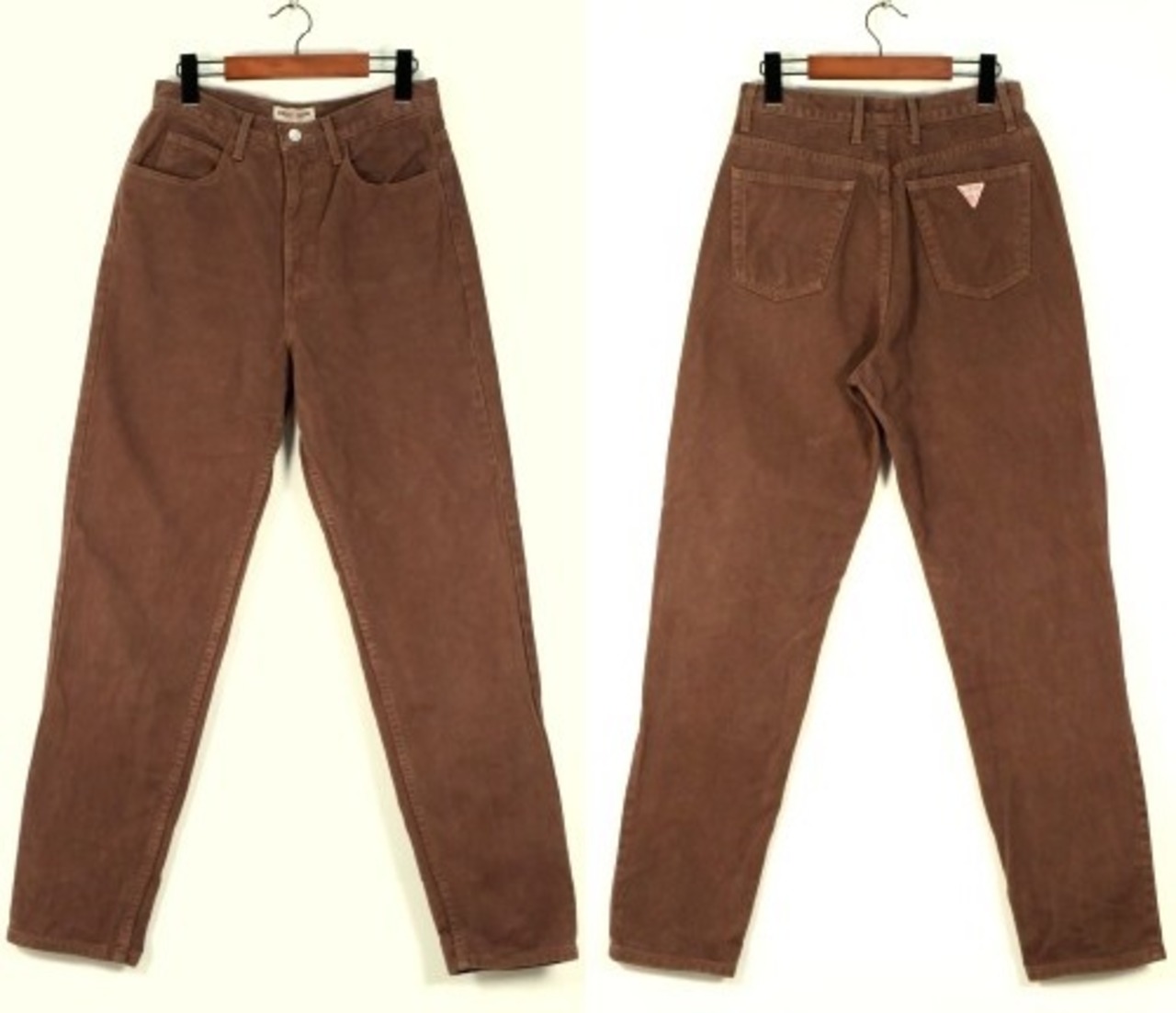 1981年にカリフォルニア州ロサンゼルスで創業された"GUESS"より、80年代ハイウエスト・テーパードパンツ。起毛感のあるモールスキン生地を使用した、あたたかな風合いが魅力の一品です。股上が深いハイウエストから裾にかけてテーパードされたシルエットが特徴的な、レディースならではのシルエットに、バックポケットのブランドマークがアクセントになっています。とくに目立ったダメージはございませんが、多少の着用感が見られますのであくまでUSED品とご確認の上ご検討ください。デニムやチノとは異なる素材感のため、新鮮なスタイリングをお楽しみいただけるアイテムです。