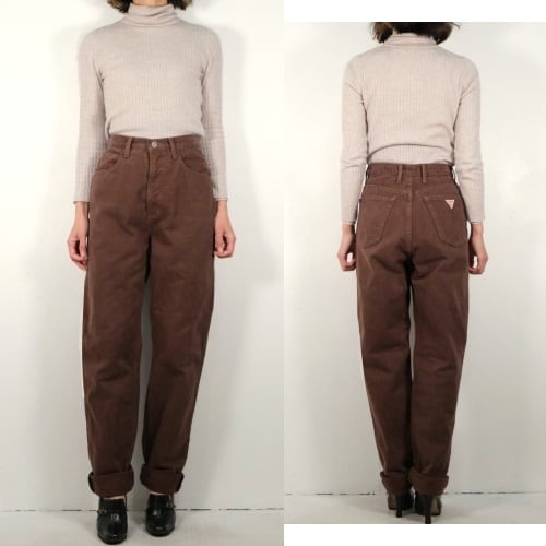 80's GUESS brown moleskin hi-waist tapered Pants