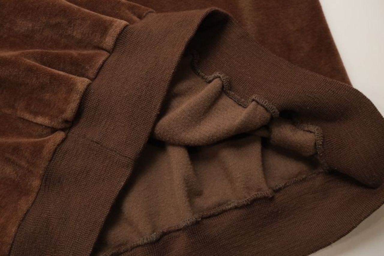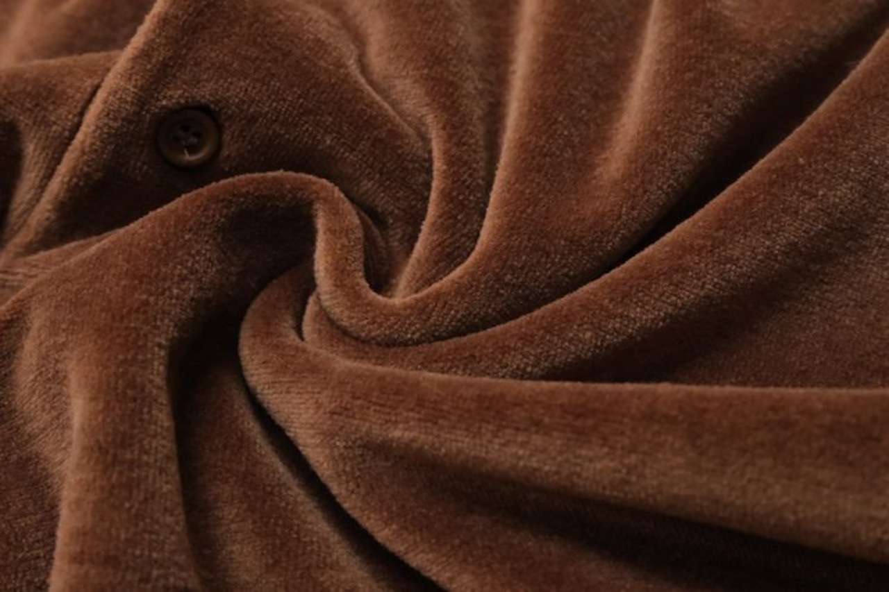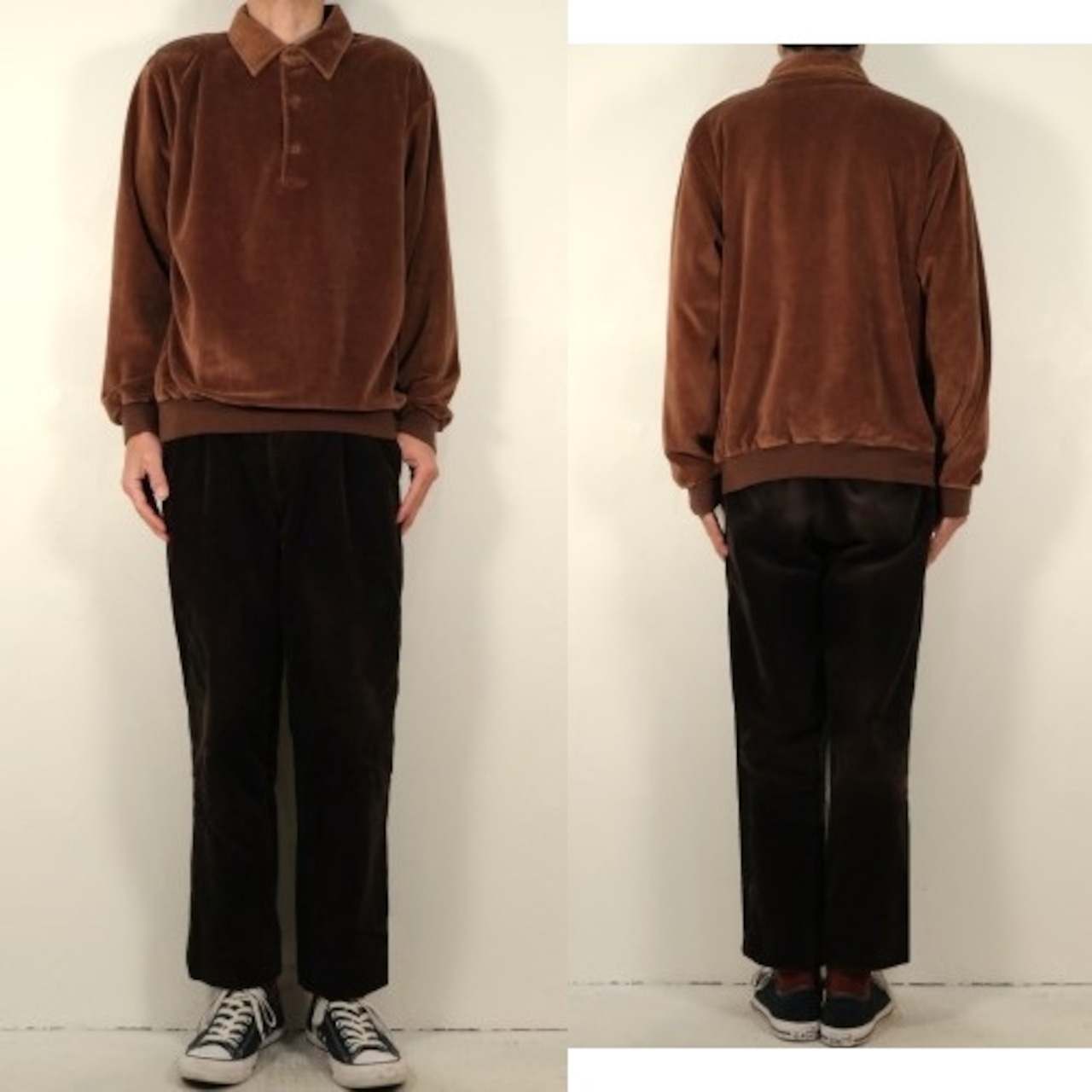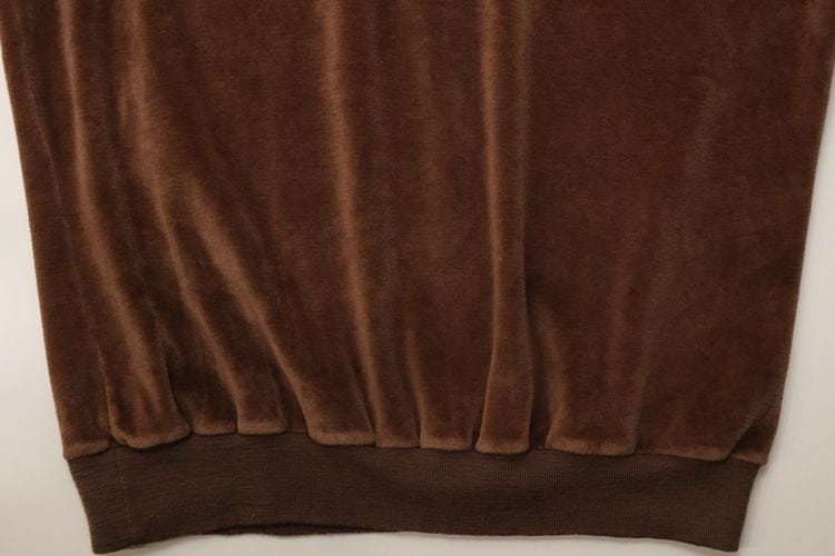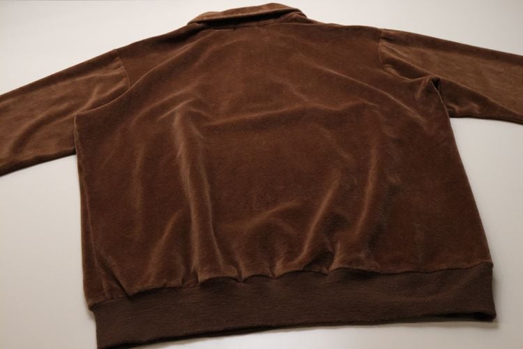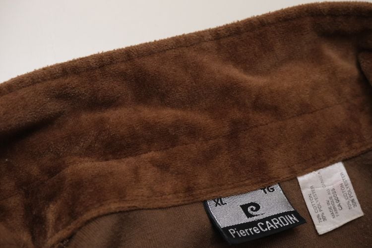 1950年にパリで自身の名を冠し設立されたイタリア・ヴェネツィア出身のファッション・デザイナー"Pierre Cardin"『ピエール・カルダン』から80年代のカナダ製シャツ。程よい厚さできめの細かなベロア(コットン×ポリエステル混紡素材)を使用し、上質な艶と光の角度で深い陰影を描くブラウンの温かな色味に高級感がありながらもどこか懐かしいレトロな雰囲気を感じるアイテムです。身幅にゆとりを持たせたボリュームあるシルエット、小ぶりなのカラー、3つボタンのプルオーバー、裾口と袖口のリブ切り替え、ベロア特有の重みと柔らかさによる身体のラインに沿ったドレープ感も魅力となっています。着用の上で問題となるダメージや汚れはなく毛並みの潰れもございませんが、全体的に着用感のあるUSED品ですのでご理解の上ご検討ください。ウール・スラックスやタック・パンツと合わせれば品のあるモード寄りに、デニムやチノ・パンツと合わせれば素材の艶が際立つ抜け感のあるスタイルを演出でき、ジャケットやコートと合わせたレイヤードでは質感のコントラストを楽しめる1本です。