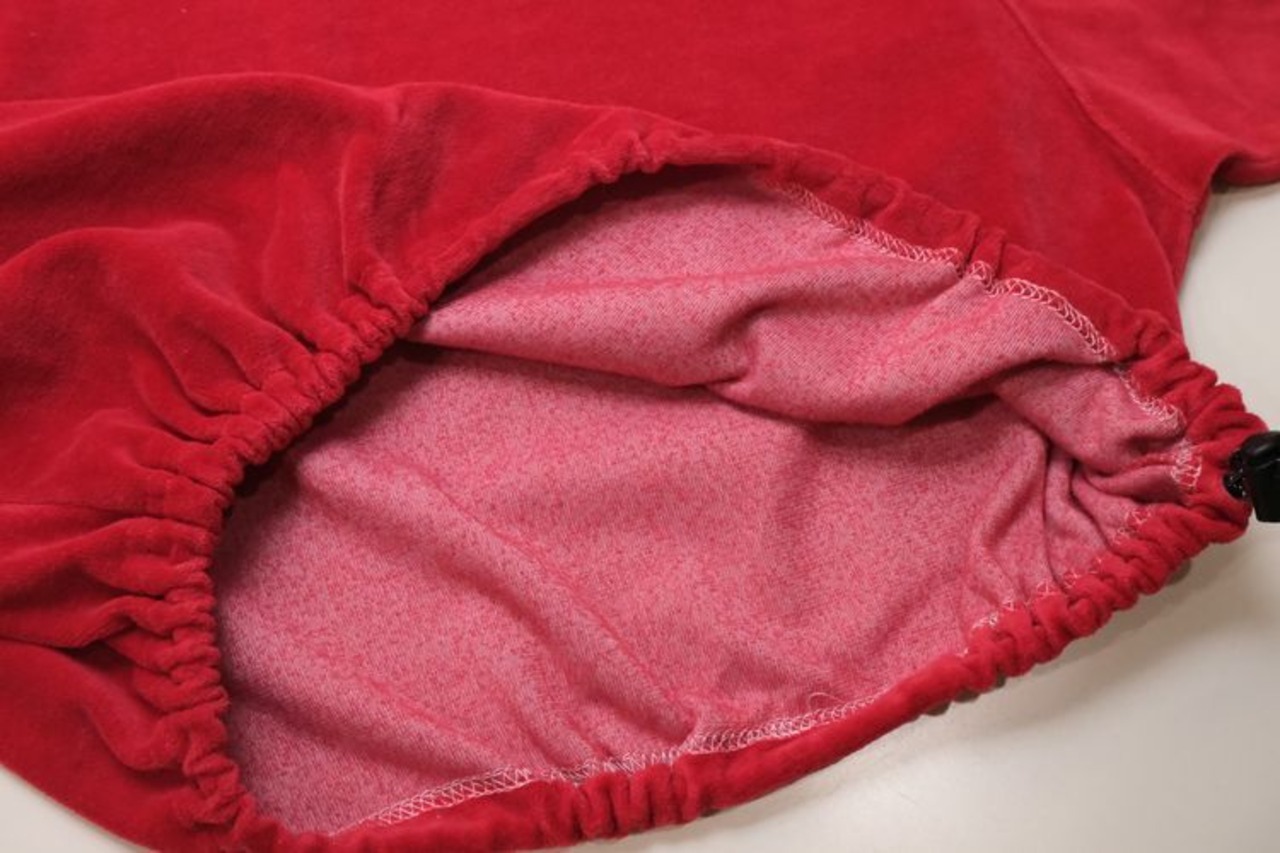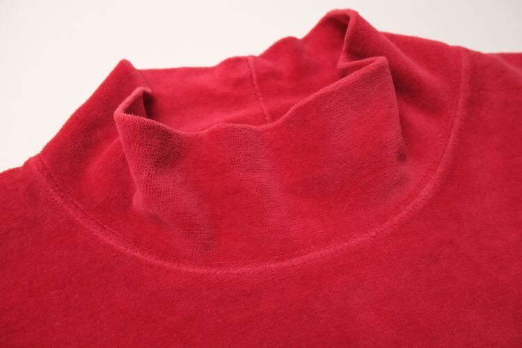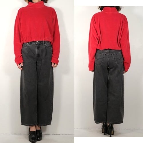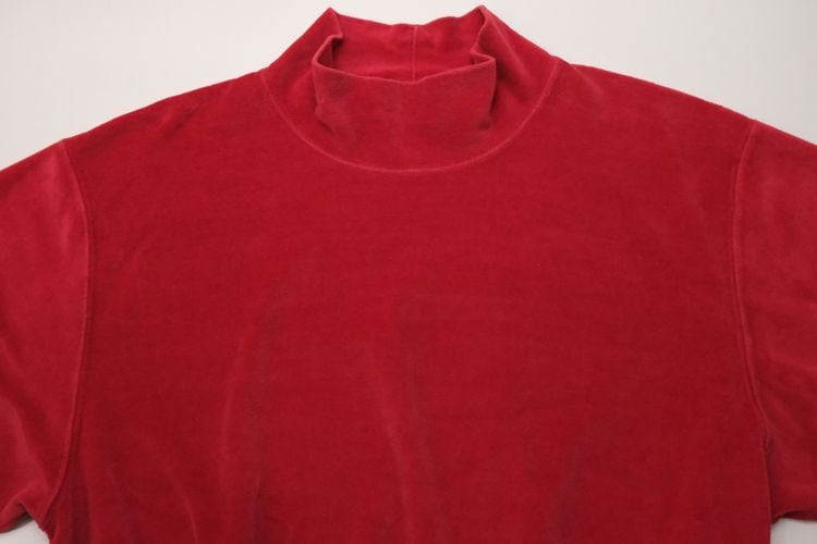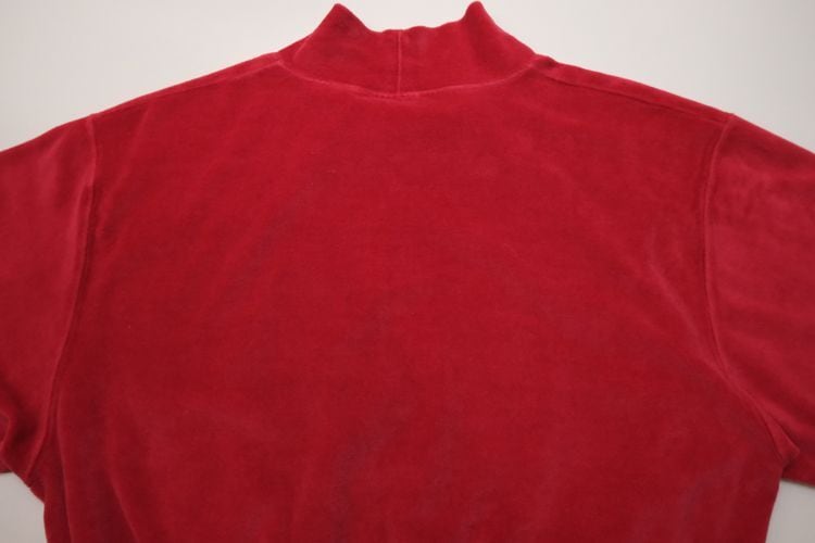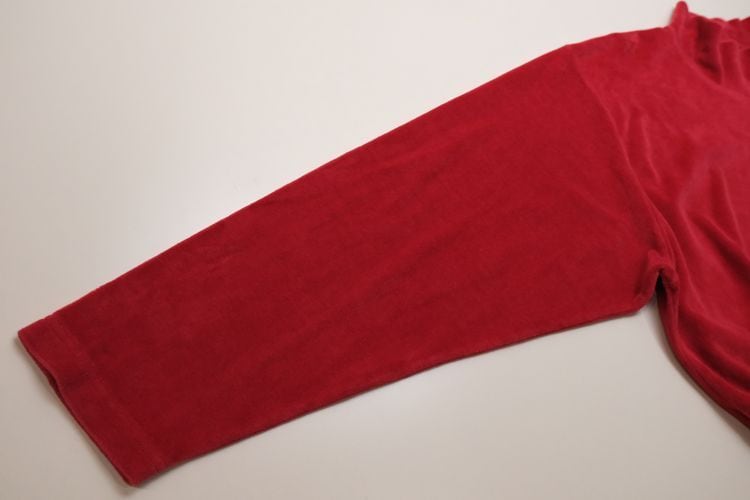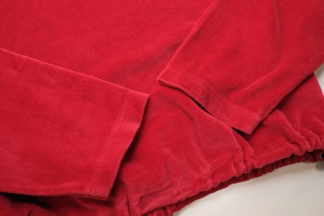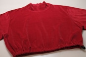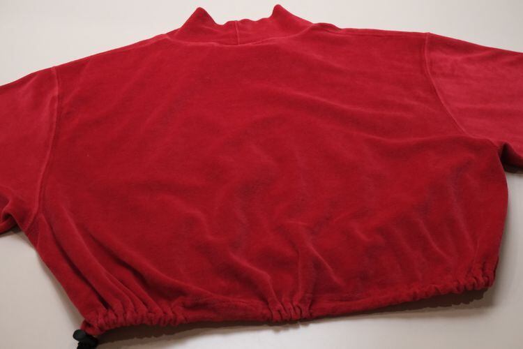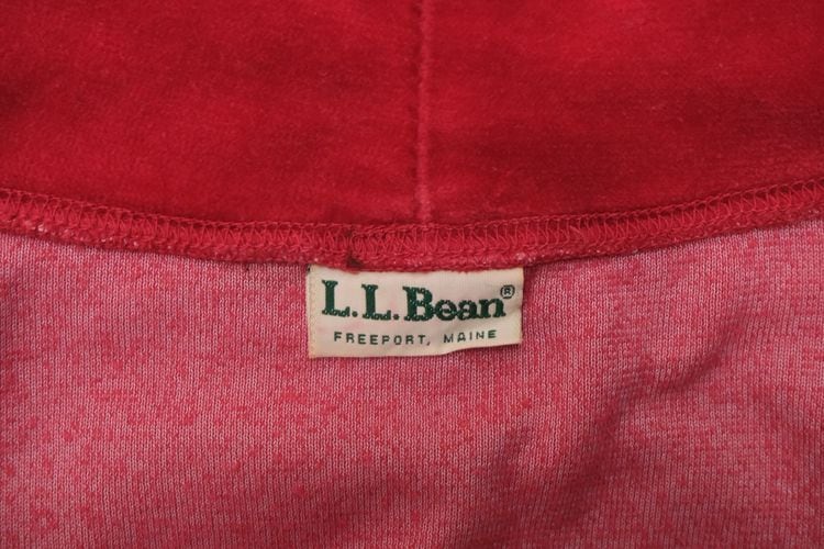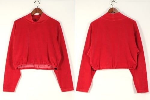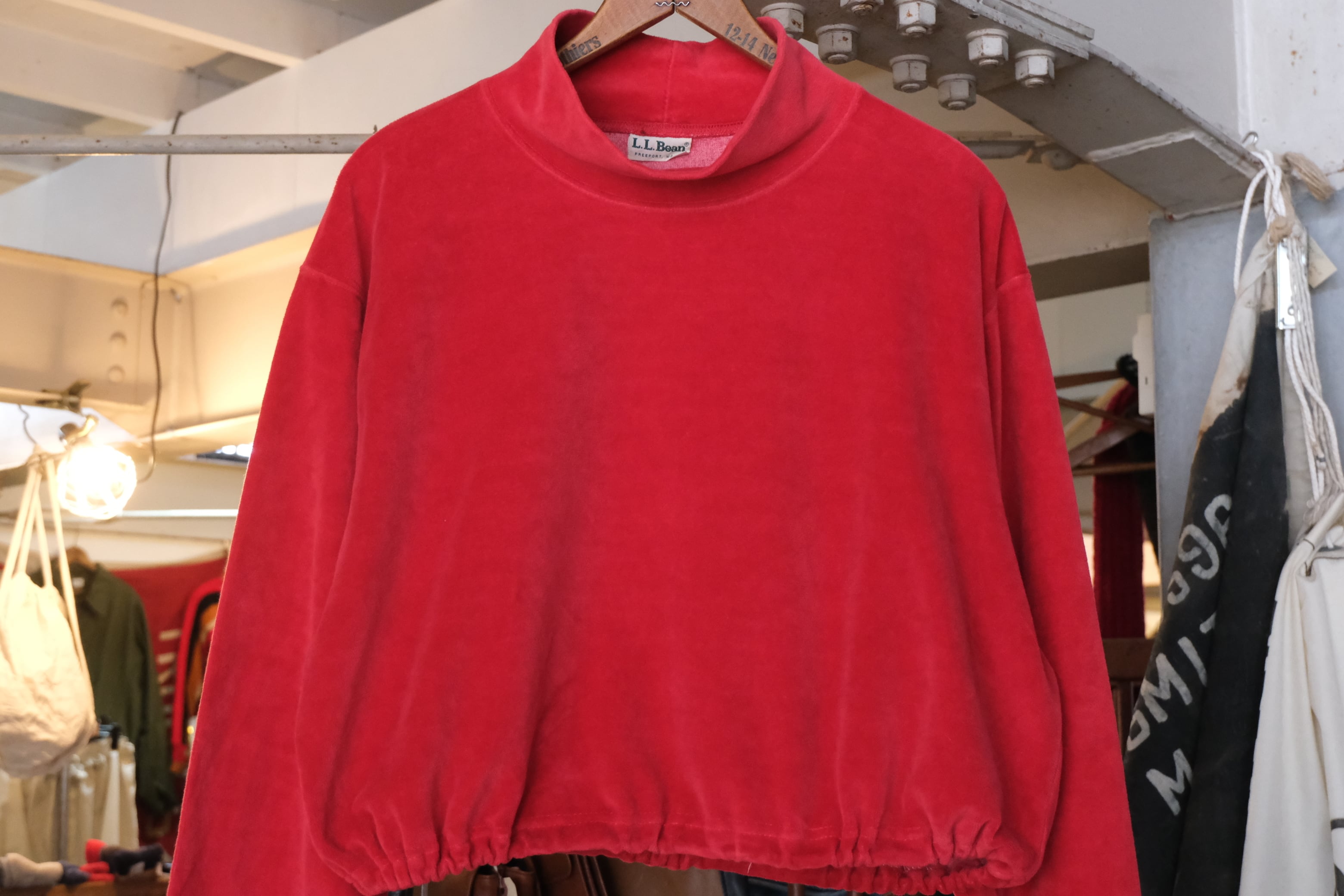 1912年"Leon Leonwood Bean"によりメイン州フリーポートで創業された"L.L.Bean"より、レッド色ハイネックのクロップドトップ。おそらくリメイクされたものと思われますが、裾にドローコードが通されたクロップド丈のデザインが素敵な一品です。ゆったり深いアームにハイネックが特徴のシルエット、裾のコードはゴム仕様になっています。コットンベースのベロア生地は柔らかな風合いに優れ、肌触り良くリラックスした着心地でお楽しみいただけます。コンディションは良く、とくに目立ったダメージは見られません。真っ赤なカラーリングが目を引き、ハイウエストパンツやギャザースカートにさらりと合わせるだけで個性ある着こなしを演出できます。