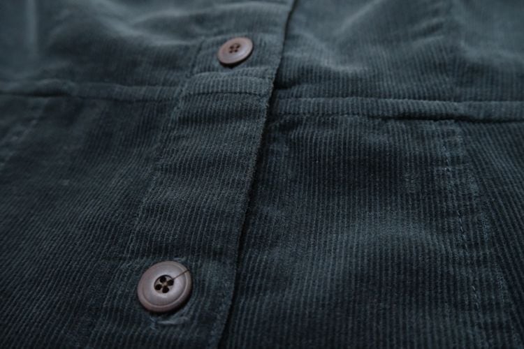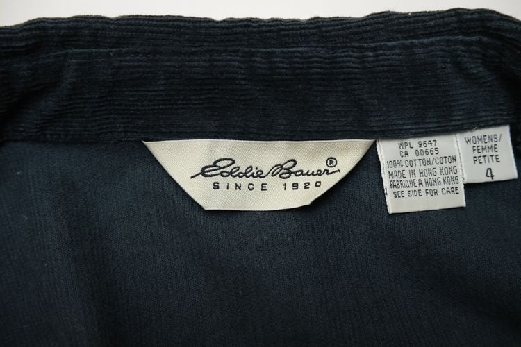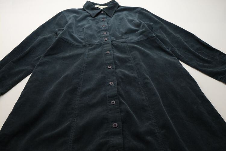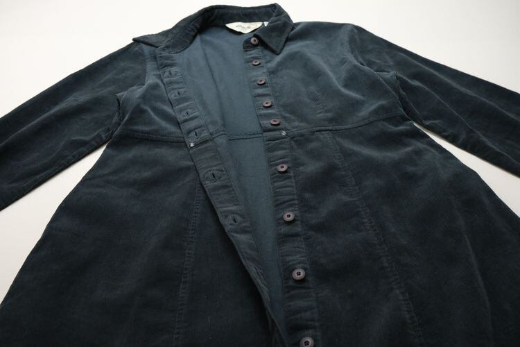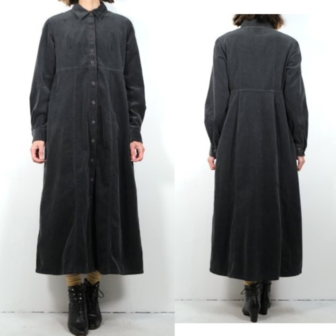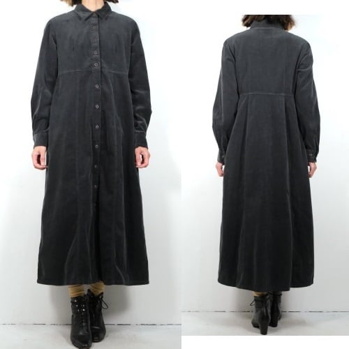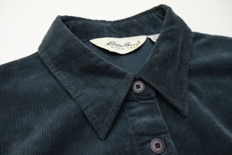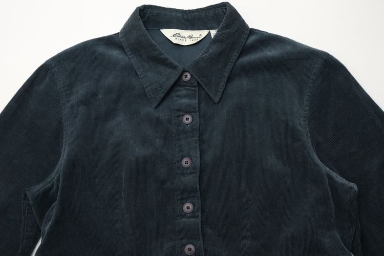 1920年ワシントン州シアトルでデザイナーが自身の名を冠し創設された"Eddie Bauer" より、00年代コーデュロイのシャツドレス。風合い豊かな100%コットンの細畝コーデュロイ生地を使用したデイドレスです。程よくゆとりのあるクラシックなシャツスタイル、ウエストラインが綺麗にフィットするロング丈のシルエット。左右にポケット付き、羽織りとしても着用できるボタンアップデザイン。厚みのあるコーデュロイ生地はシルエットを美しく描き、使い込むと増していく風合いを期待できそうです。コンディションは良く、とくに目立ったダメージは見られません。深みのあるカラーリングが雰囲気良く、様々な着こなしのアレンジをお楽しみいただけます。