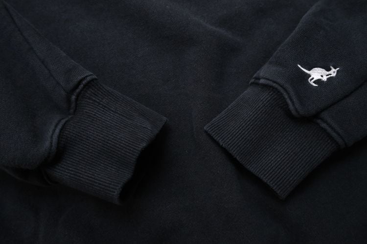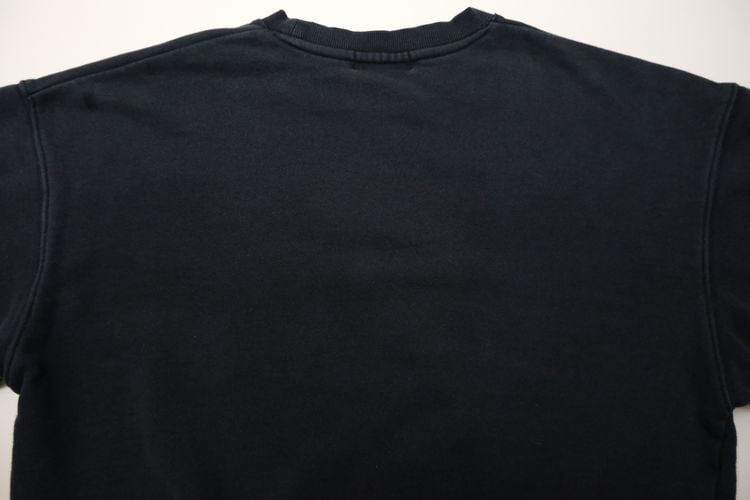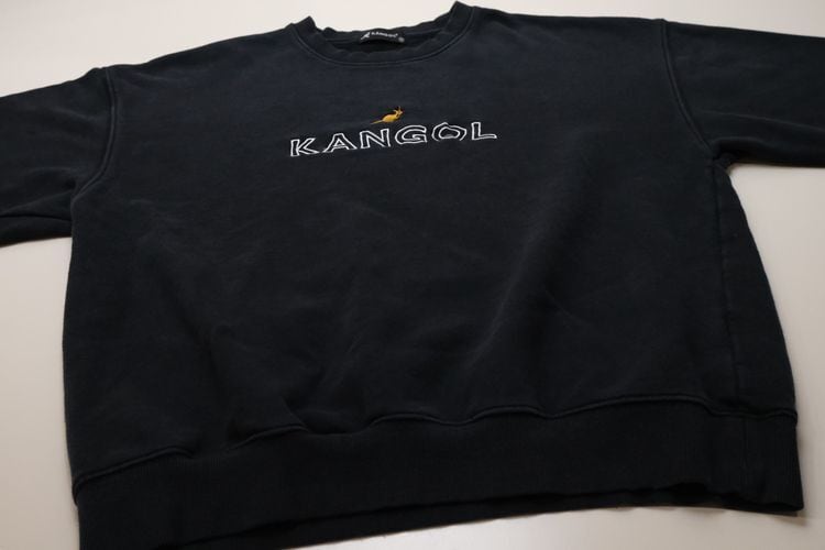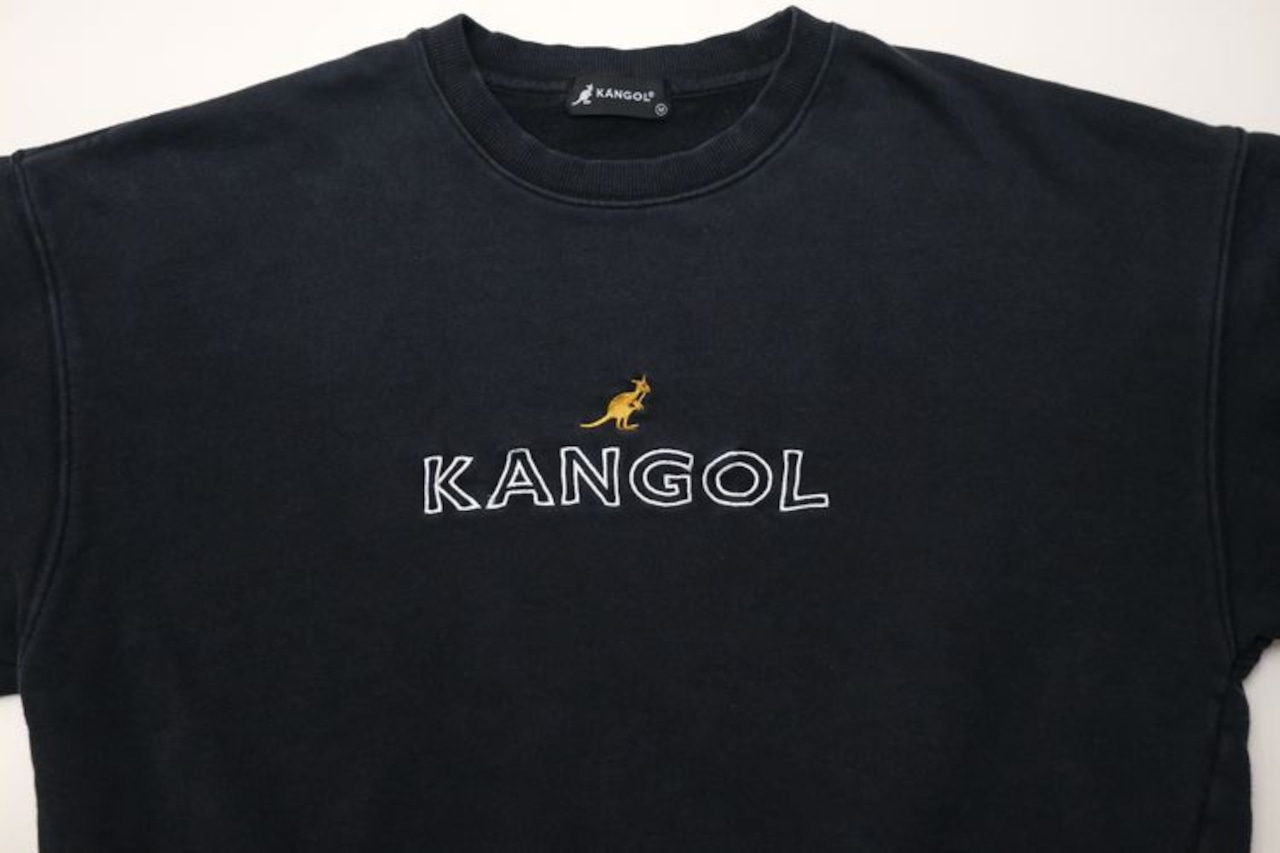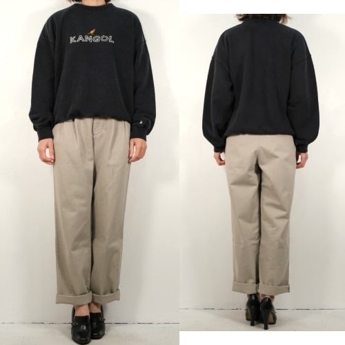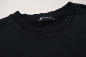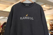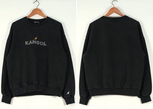 1938年設立イギリスの老舗帽子ブランドの歴史背景を元に、ストリートファッションアイテムも展開している"KANGOL"より、2000年代ブラックカラーのロゴ刺繍スウェット。程よく洗い込まれてフェードした色合いが雰囲気の良い仕上がりを見せる一品です。オフショルダーにゆったりアーム、幅広リブでウエストにフィットするジャスト丈が特徴のバルーンシルエット。胸にブランドロゴ、左袖口にカンガルーの刺繍がポイントになっています。コットンベースの裏パイルスウェット生地は肌触りの良さとくたり柔らかな素材感が魅力となっています。コンディションとして多少の着用感があり、色褪せや右袖口に生地のリペアなど見られますのでUSED品とご確認の上ご検討ください。ハイウエストパンツやタイトスカートなど幅広いボトムスと合わせやすく、さりげなく個性を演出できる一品です。
