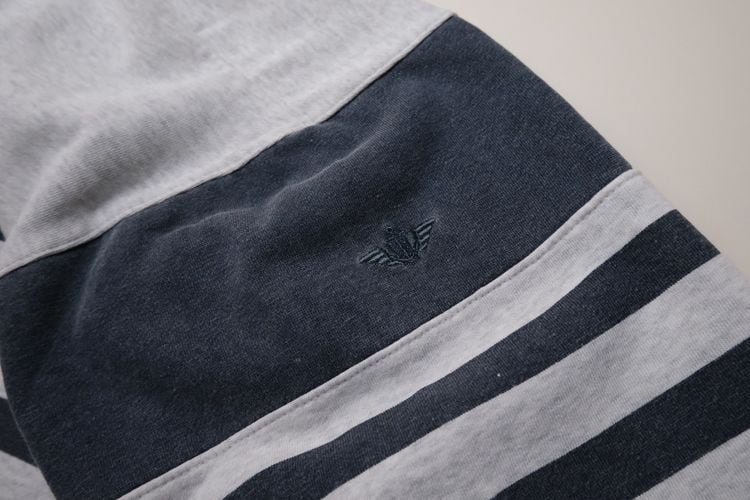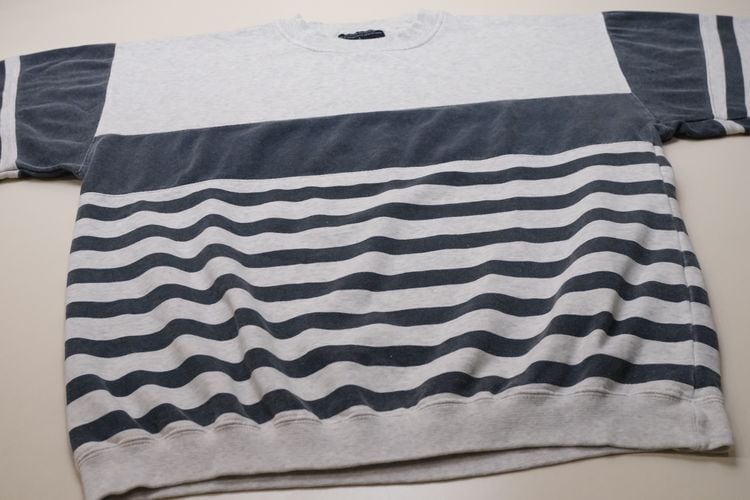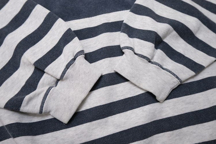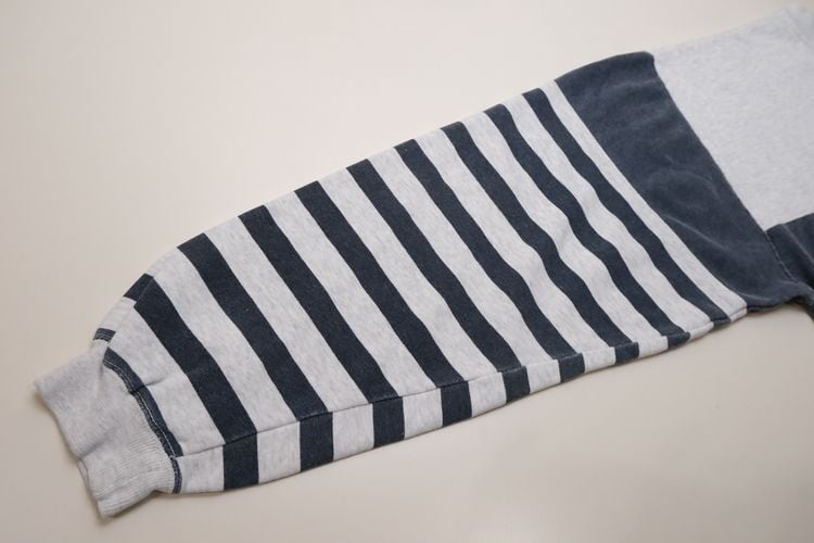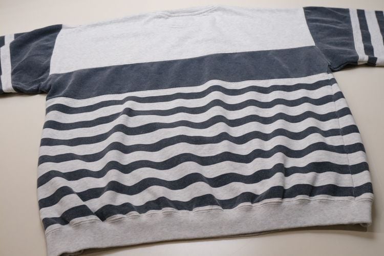 "Levi's"ブランドのひとつとして1986年に誕生した"DOCKERS by Levi's" より、90年代ボーダーのオーバーサイズスウェット。裾と袖の大胆なパッチワーク切り替えデザインが目を引くユニセックスアイテムです。身幅とアームがゆったり、裾と袖口が絞られたバルーンシルエット。薄手の裏起毛スウェット生地はくたりと柔らかな風合いが良く、オーバーサイズの着こなしもバランス良くお楽しみいただけます。コンディションとして全体的に着用感や色褪せ、首まわりに僅かに変色など見られますのでUSED品とご理解の上ご検討ください。軽くリラックスした着心地はのんびり過ごす休日にぴったりです。