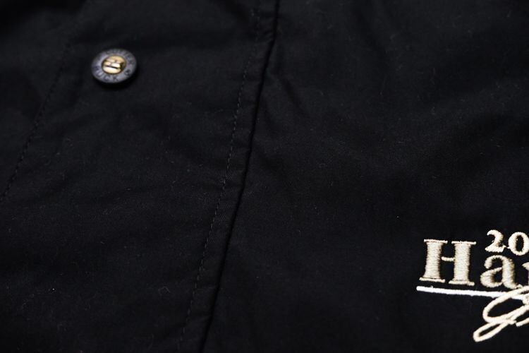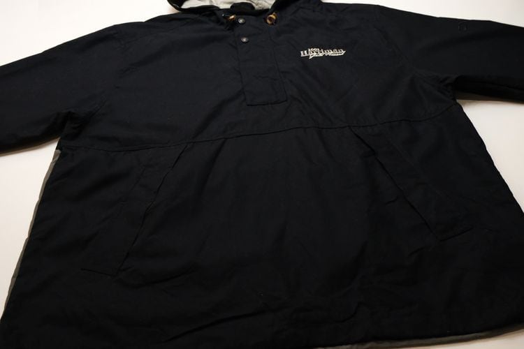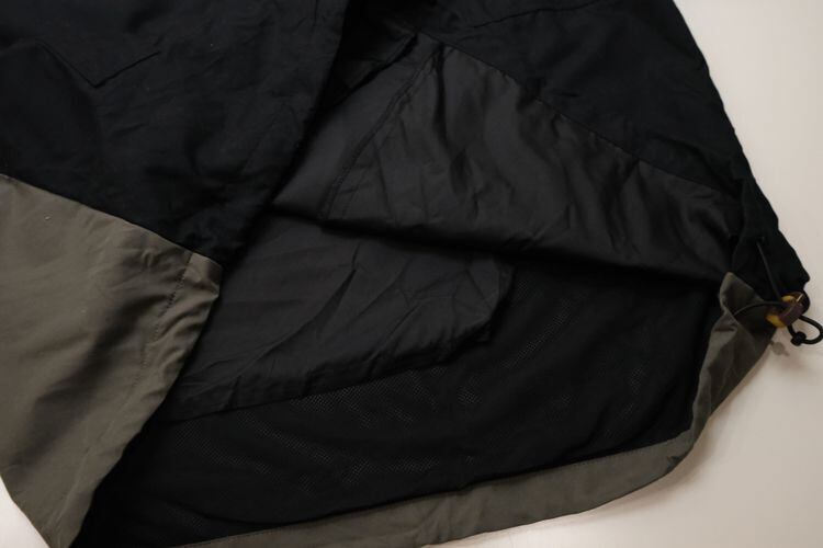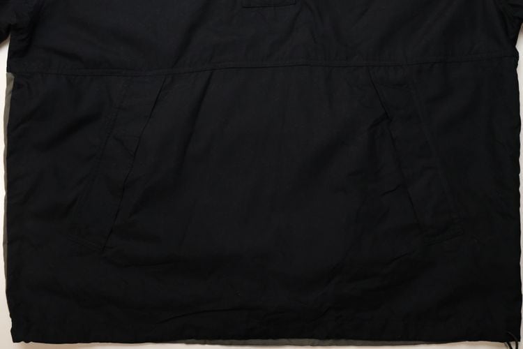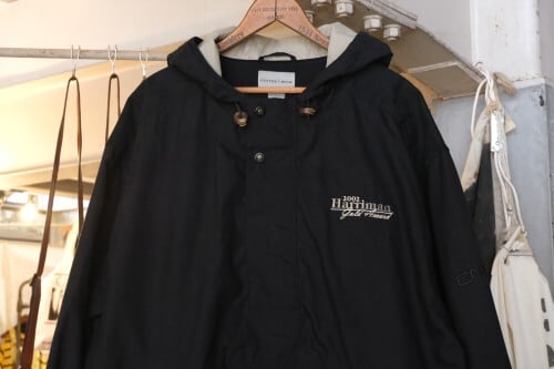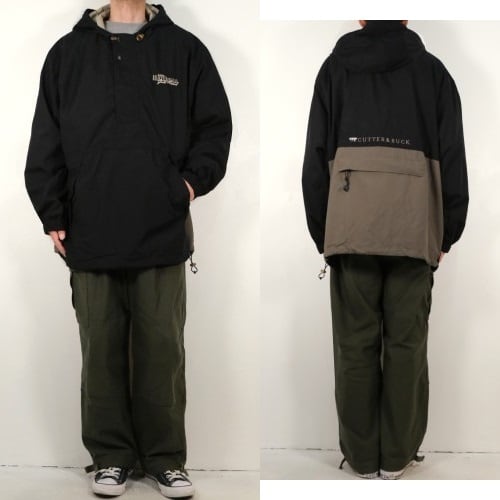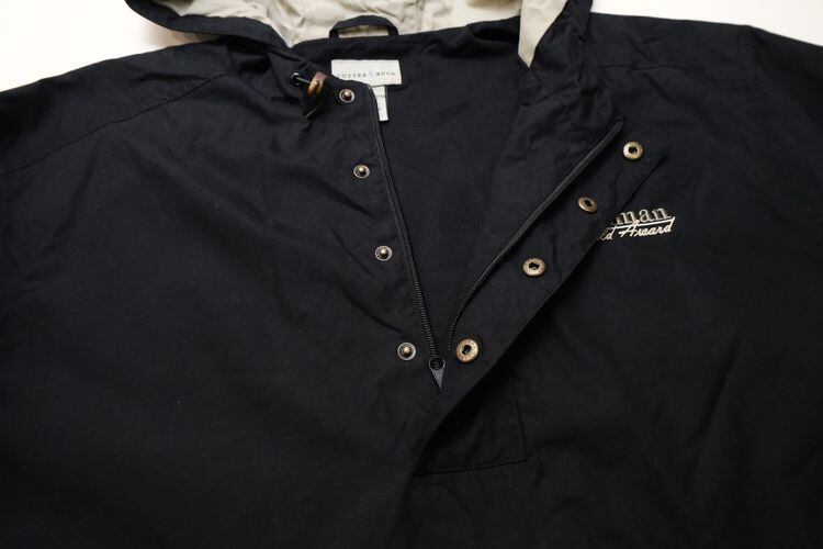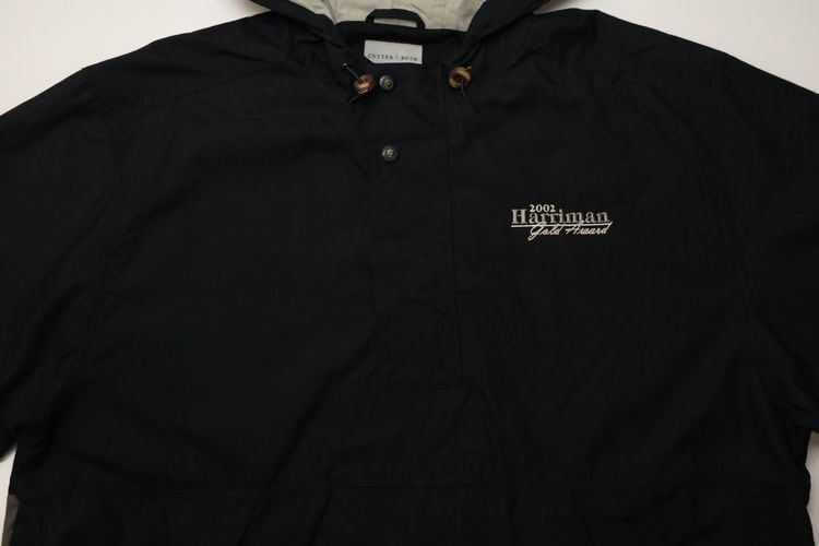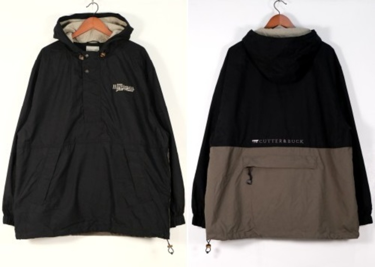 1989年にワシントン州シアトルで創業されたスポーツ・ウエア・ブランド"CUTTER & BUCK"から2000年代初期のプルオーバー・ジャケット。シェルに薄手でやわらかな肌触りの100%ポリエステルを使用し、マットなブラックをベースに後部のグレージュの切り替えがさりげないコントラストを効かせ、背面にライニング・メッシュが施された通気性にも優れたアイテムです。ざっくりとした着用に適したボリュームあるシルエット、着脱のしやすいハーフ・ジップ×ボタン・フロント、スラッシュ・ポケット、左胸に刺繍で施されたシャンパンゴールドの"2002 Harriman Gold Award"、そしてバックのジップ・ポケットを裏返して本体を収納できるパッカブル仕様も特徴となっています。着用の上で問題となるダメージや汚れはございませんが、全体的に着用感のあるUSED品ですのでご理解の上ご検討ください。ざっくりとしたシルエットと軽い着心地は、少し肌寒い季節にさらっとリラックスして羽織るライト・アウターとしてたいへんおすすめな1本です。