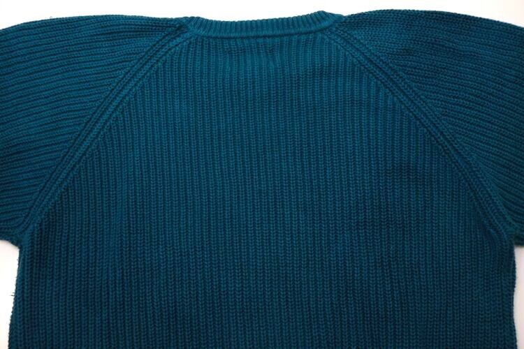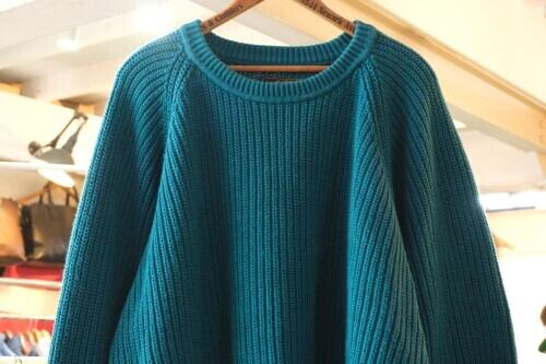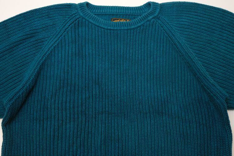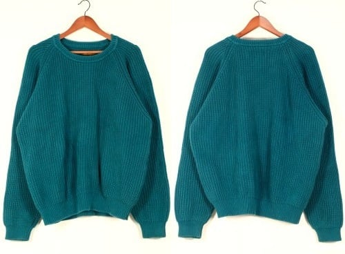 1920年ワシントン州シアトルでデザイナーが自身の名を冠し創設された"Eddie Bauer" より、90年代ターコイズカラーのコットンセーター。ざっくり編み上げられたコットンニットの風合いが魅力のアイテムです。クルーネックにラグランスリーブ、深いアームが特徴のボリュームシルエット、リブ編みのローゲージニットは柔らかな風合いと伸縮性に優れ、一枚でも肌触り良くロングシーズン着用いただけます。全体的に着用感があり、表面に毛羽立ちや色褪せが見られますのでUSED品とご確認の上ご検討ください。裾のリブがウエストにフィットし長すぎないためオーバーサイズの着こなしもバランス良く、綺麗なターコイズの色味もコーディネートのポイントになります。
