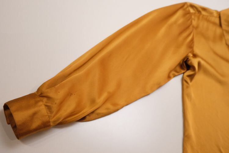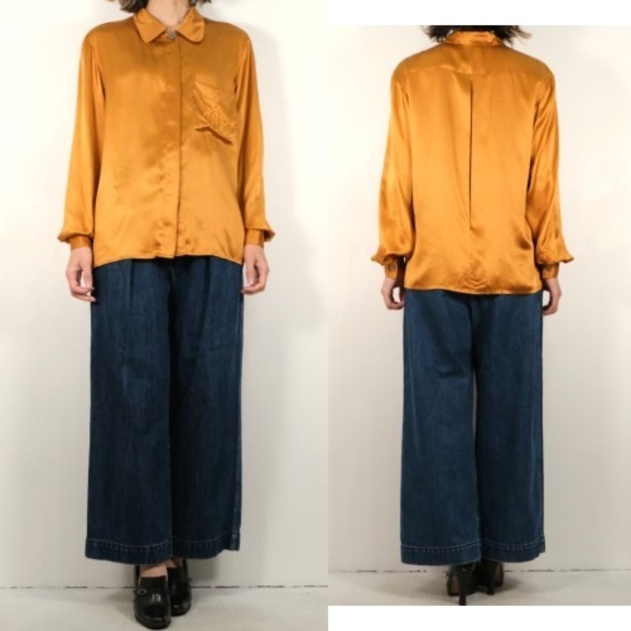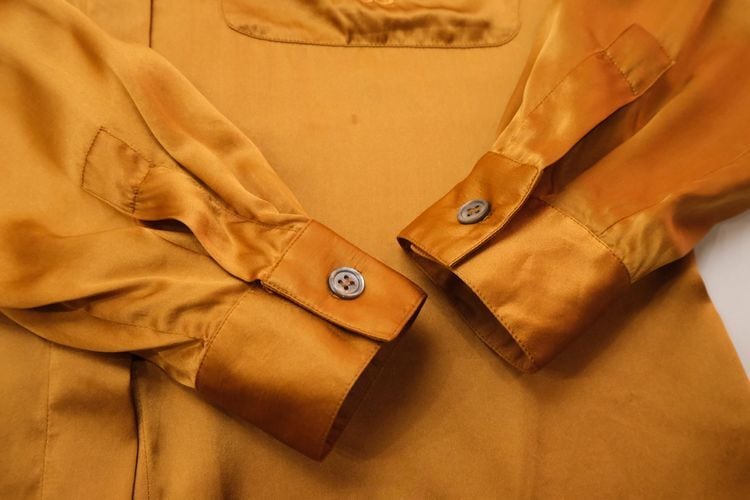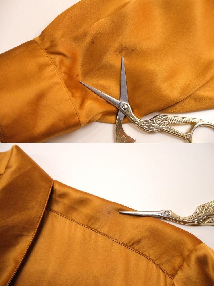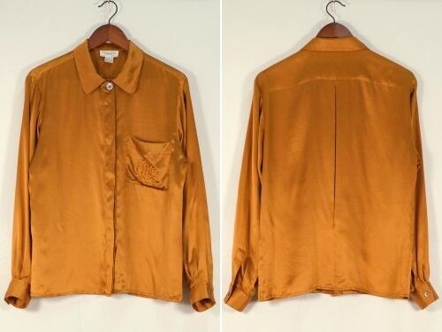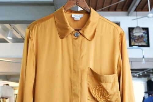 1946年にパリで創業された世界的なファッション・ブランド"Christian Dior"より、90年代シルクサテンの比翼シャツ。クールさも感じるドレッシーなデザインと、それを引き立てる上質な素材感が際立つ一品です。ヨークの縁に細かくギャザーを寄せたゆったりシルエット。重厚な貝ボタンが使用された比翼シャツにエレガントなパフスリーブ、カットの美しいラペルやポケットに施されたモノグラム刺繍も目を引きます。シルクサテン生地はしっかりと厚みがあり、角度によって色みが変化する豊かな光沢とのびやかなドレープ感が魅力です。コンディションとして多少の着用感があり、右袖口や左肩、右腹部や左ポケット下にそれぞれシミが点在しておりますのでUSED品とご理解の上ご検討ください。ぱっと華やかな色みはスタイリングの主役になり、デニムパンツやミリタリーパンツなど合わせた外しスタイルもお勧めです。