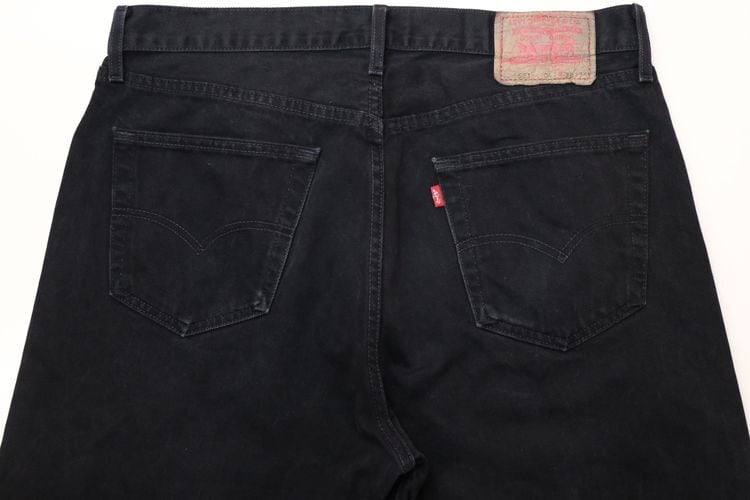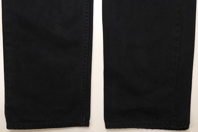 1853年"Levi Strauss"によりサンフランシスコで設立された"Levi's"からヨーロッパ・ライン"Levi's 521"デニム・パンツ。厚手でしっかりとした100%コットン・ツイルを使用し、オリジナルの後染めブラックのディープな色味と着用と経年により変化したアタリに1点ものらしい風合いの良さを感じるアイテムです。デニム・パンツの代表格といえる5ポケット、適度な深さの股上にクセのない腰まわりのライン、程よい広さのワタリから裾口にかけてほんのりとテーパードを効かせたストレート・シルエット『レッド・タブ』『トップボタン裏C01/クロアチア』『品番印字: 0018』(2000年18週目製造)のディテールとなっています。着用の上で問題となるダメージや汚れはなく、偏った色落ちのない良いコンディションですが着用感のあるUSED品ですのでご理解の上ご検討ください。インディゴとはまたひと味違った雰囲気に魅力があり、膝などの部分的な色落ちがないためこれからご自身の身体に沿った色落ちを楽しんでいただけます。