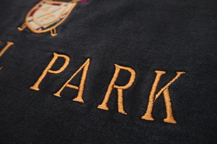 1981年にカナダのオンタリオ州トロントで設立されたカスタム・ウェア・ブランド"SDI/ Screenprint Designs Inc."から80年代頃のカナダ製スウェット。やや厚手でぱりっと張りのある100%コットンを使用し、着用と経年によりフェードしたアッシュブラックの色味がたいへん雰囲気の良いアイテムです。ざっくりとした着用に適したオフショルダーのオーバーサイズ・シルエット、左袖にブランド・パッチ、フロントの中央に配されたカラフルなクレストとゴールドの"ANGEL PARK"刺繍が個性的な仕上がりとなっています。着用の上で問題となるダメージや汚れはございませんが、全体的に色褪せのあるUSEDコンディションですのでこの1点ものらしい風合いの良さを好まれる方におすすめ致します。カジュアル感がありながらも落ち着いた色味による大人っぽい雰囲気がたいへん良く、デニムやチノ・パンツと合わせた王道のアメリカン・カジュアルはもちろん、スラックスやウール・パンツで少し品よくまとめるスタイルにも自然に馴染む1本です。