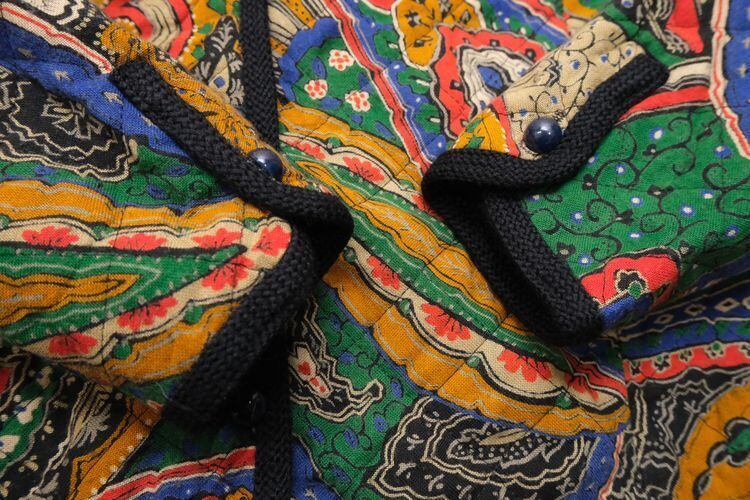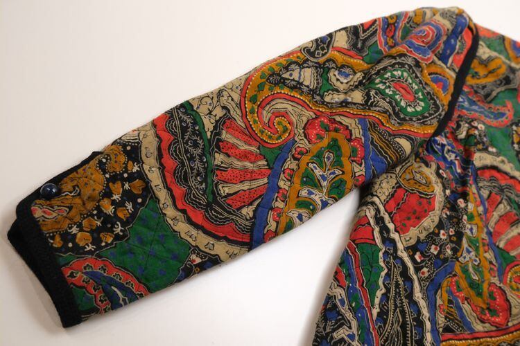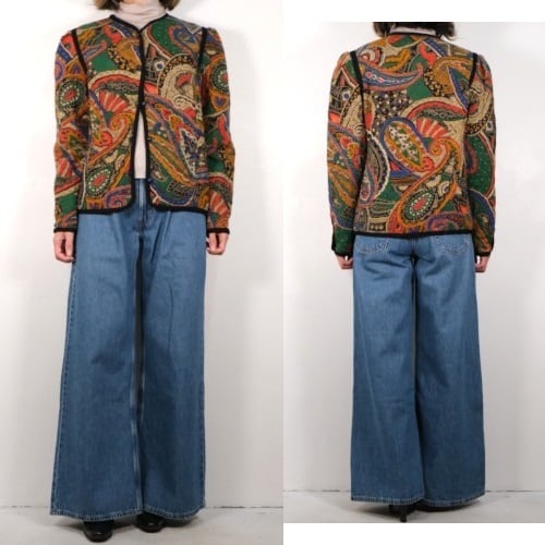 2000年代ペイズリー柄のキルトジャケット。賑やかなテキスタイルにブラックカラーのパイピングがアクセントになった、ボヘミアンテイストのライトジャケットです。ボディラインに沿ったフィットシルエットにパフスリーブ、フロントボタンアップのデザイン。薄手のキルティング生地は軽い着心地でロングシーズンお楽しみいただけます。とくに目立ったダメージはございませんが、多少の着用感が見られますのであくまでUSED品とご確認の上ご検討ください。Tシャツ×デニムパンツなどのシンプルなスタイルにさらりと羽織るだけで雰囲気があり、人と違ったスタイリングが完成します。