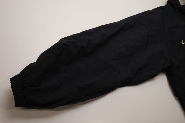 1971年にワシントン州イサクアで創業された"PORT AUTHORITY"から2000年代頃と思われるジャケット。シェルにやや薄手でやわらかな肌触りの100%ポリエステルを使用し、アッパーのボディー・ライニングにポリエステル・メッシュが張られ背面にベンチレーションが施された通気性の良さが魅力のアイテムです。ざっくりとしたサイジングをラグランスリーブですっきりと仕上げたシルエット、ジップアップ・フロントのスタンド・カラー、胸下位置の切り替え、スラッシュ・ポケット、そして単色ブラックに映えるゴールドの刺繍で施された"Luis"と月桂樹を模した"CERTIFIED NCTI Master Technician"のカラフルなロゴがたいへん目を惹く仕上がりとなっています。全体的に着用した様子のあまり感じられないたいへん良いコンディションですが、あくまでUSED品とお考えの上ご検討ください。軽く羽織れる薄手のアウターですので、シャツなどのトップ1枚では少し肌寒い季節や夜間の気温が低いときに重宝し、こちらは技術資格を取得したスタッフ用に製作された販売用ではない珍しいアイテムですので気になる方は是非ご検討ください。