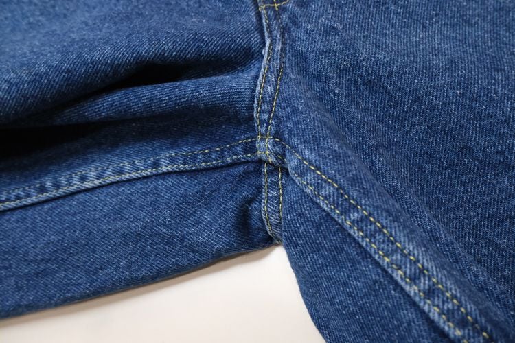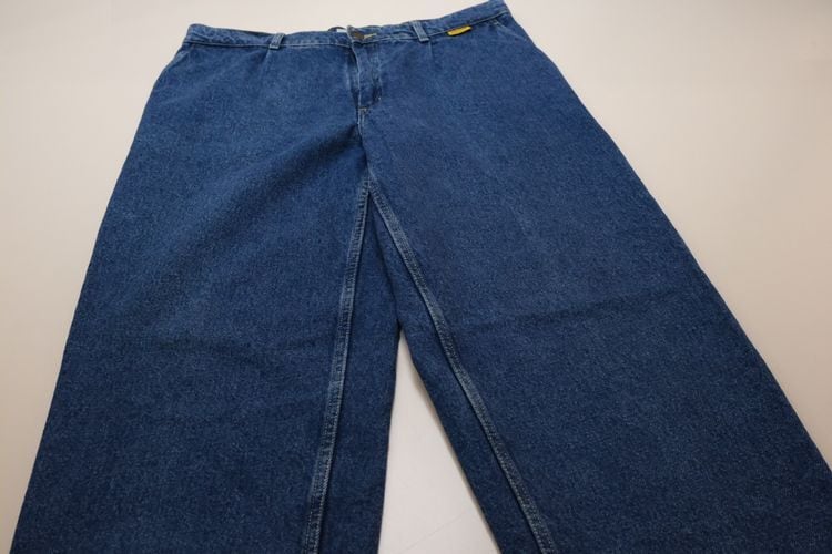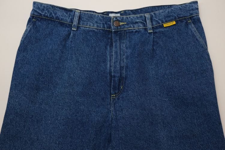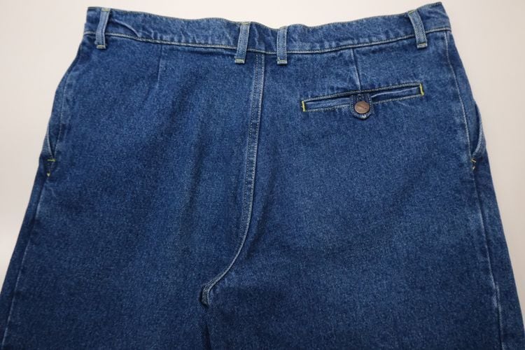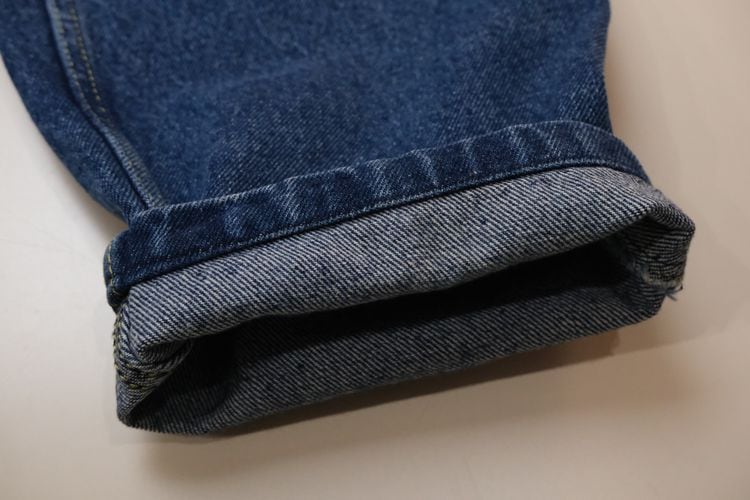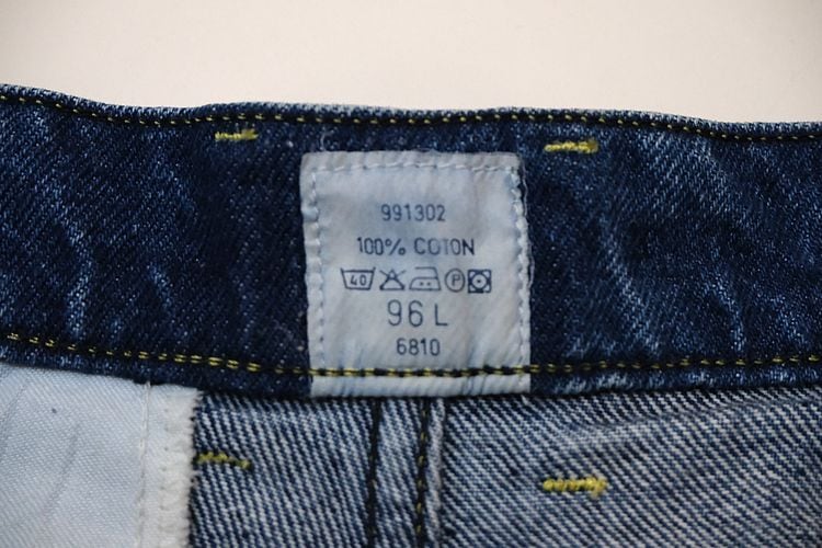 フランス郵政公社"LA POSTE"の従業員に支給されていた90年代頃と思われるデニム・パンツ。厚手でしっかりとした100%コットン・ツイルを使用し、この年代らしいライトインディゴの独特な淡い色味がたいへん雰囲気の良いアイテムです。腰まわりにゆとりある股上の深いワンタック、広いワタリから裾口に掛けてテーパードを効かせたシルエット、片玉縁のバック・ポケット、ライトインディゴに映えるイエローのステッチと"LA POSTE"のタグがアクセントとなっています。着用の上で問題となるダメージや汚れはございませんが、全体的に着用感のあるUSEDコンディションですのでご理解の上ご検討ください。ルーズなスタイリングにたいへん相性が良く、膝などの部分的な色落ちがないのでこれからご自身の身体に沿った色落ちを楽しめる1本で、人気のある"LA POSTE"のアイテムの中でもデニム・パンツはかなり珍しいため気になる方はぜひご検討ください。