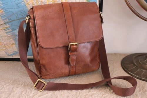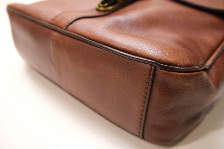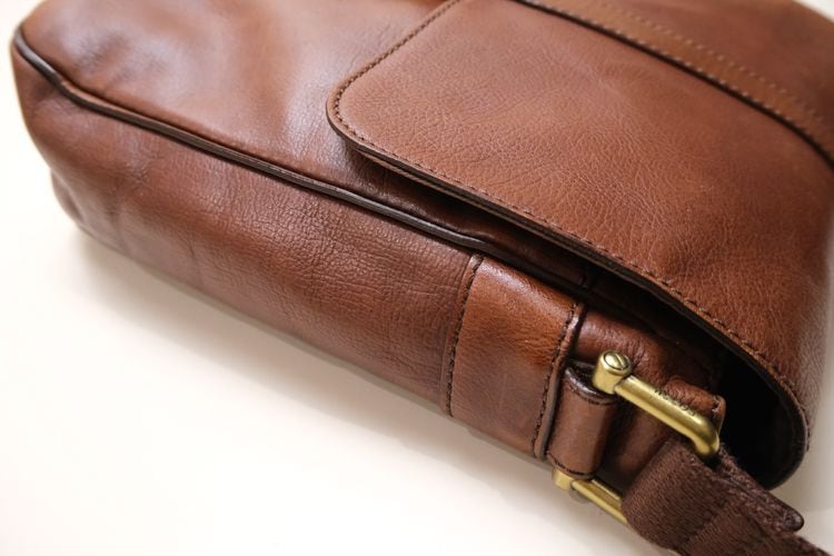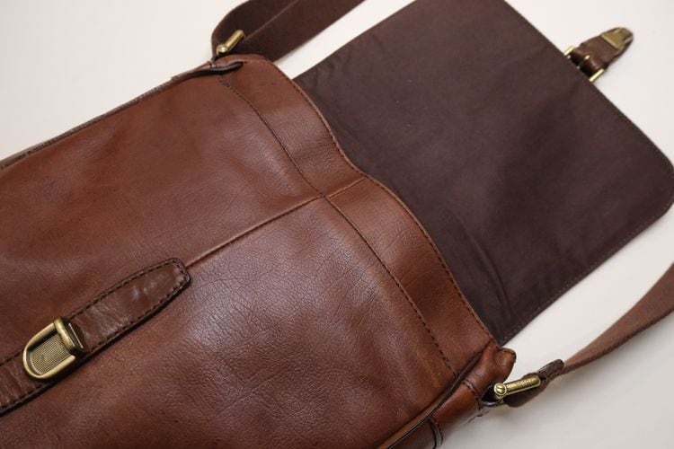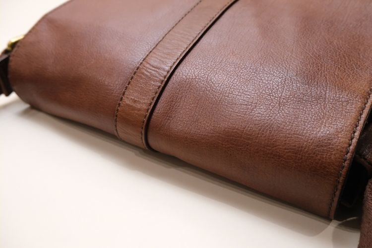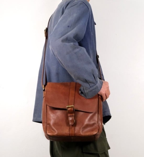 1984年"Kosta Kartsotis"によって創業された"FOSSIL"『フォッシル』からショルダー・バッグ。ナチュラルなシボの表情と風合いに優れたカウハイド・レザーを使用し、程よく使い込まれたブラウンの色味にこなれた風合いの良さを感じるアイテムです。ストラップの裏に付いた差し込み金具のフラップを開けるとスラッシュ・ポケット、大きく開くメイン収納はジップ付きポケットやスリット、ペン挿しが配され、中央の仕切りで整理しやすく、背面ポケットも備えた実用的な大容量デザインとなっています。ご愛用の上で問題となるダメージや汚れはございませんが、全体的にスレや汚れなど使用感のあるUSED品ですのでご理解の上ご検討ください。オール・レザーながらしなやかで軽く、上品なタイムレス・デザインは幅広いコーディネートに対応でき、古いものではありませんが現行にはないモデルですので気になる方は是非ご検討ください。
