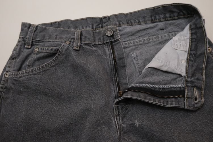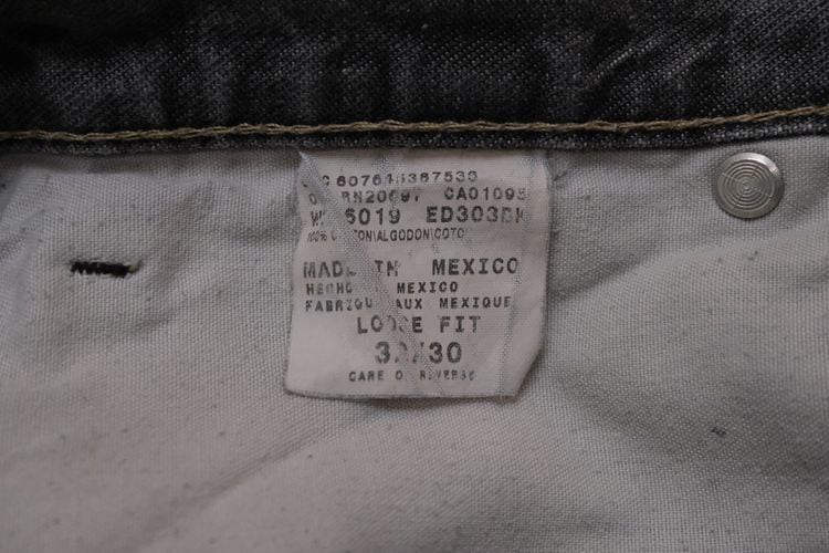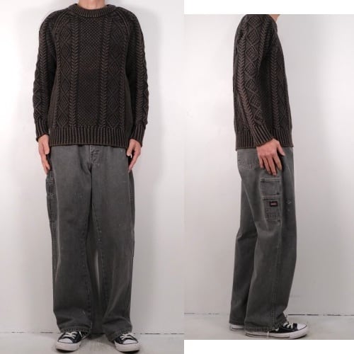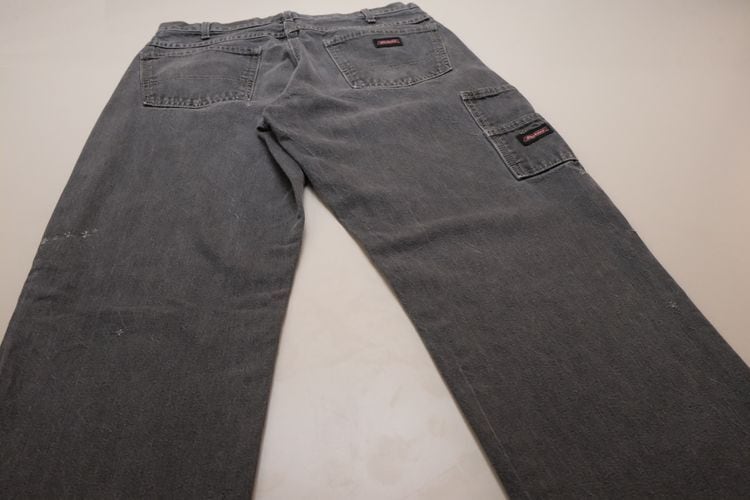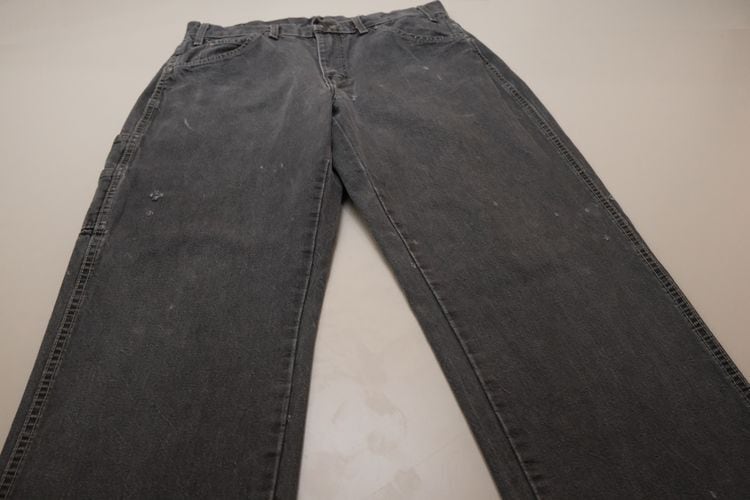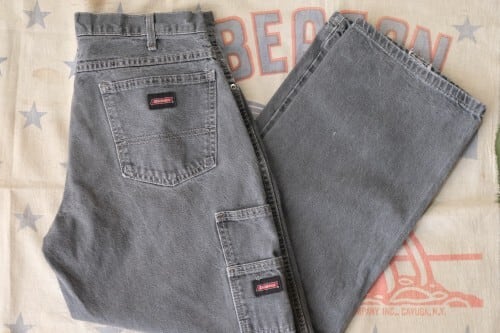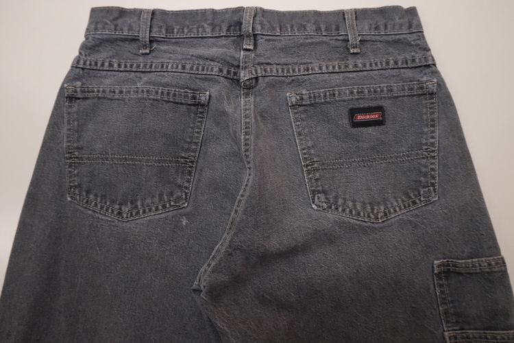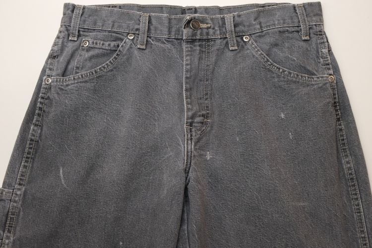 1922年にテキサス州フォートワースで創業された老舗ワークウエア・ブランド"Dickies"『ディッキーズ』から2000年代初期頃のカーペンター・パンツ。やや薄手で程よく張りのある100%コットン・ツイルを使用し、この年代らしい着用と経年によりフェードしたアッシュブラックの色味やアタリに雰囲気の良さを感じるアイテムです。やや浅めの股上にすっきりとした腰まわり、広めのワタリから裾口にかけてほんのりとテーパードを効かせたルーズなシルエット、2つのサイド・ポケット、そしてバックとサイド・ポケットに配された"Dickies"ロゴがアクセントとなっています。着用の上で問題となるダメージや汚れはございませんが、所々に小さなスレやダメージ、後部の裾口縁に擦り切れのある着用感の強いUSEDコンディションですので、このダメージを含めた1点ものらしい風合いを好まれる方におすすめ致します。シンプルなトップにさらっと合わせるだけでワーク・テイストを加味した雰囲気が演出でき、同タイプのショーツは多く見られますがロング・レングスはかなり珍しいので気になる方は是非ご検討ください。