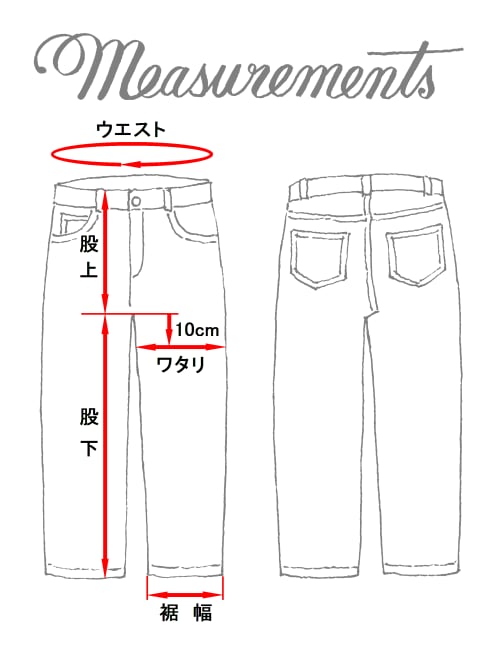 □size: 表記32×30 ウエスト 78cm(31inch)/ 股上 28.5cm/ 股下 73.5cm/ ワタリ 31cm/ 裾幅 24cm
