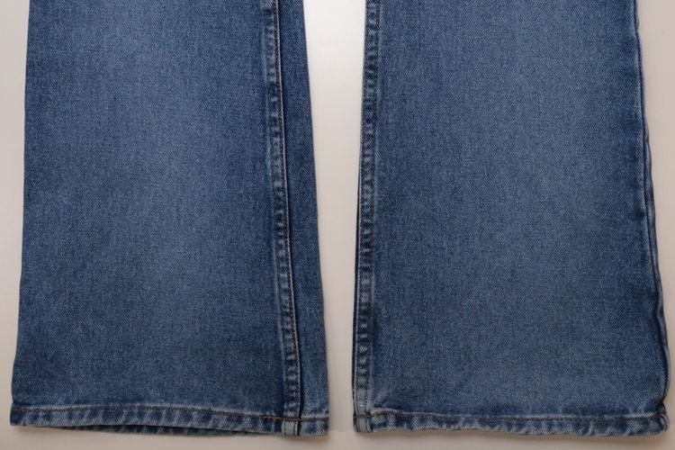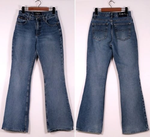 1989年にロサンゼルスで創業された"L.E.I./ Life Energy Intelligence"より90年代頃のハイウエスト・フレアデニムパンツ。タイトにフィットする腰まわりから膝下にかけてゆったり広がる、フレアシルエットが特徴の一品です。元々ウォッシュのかけられたデニムが程よく穿き込まれ、たいへん良い色落ちに仕上がっています。コンディションとして全体的に多少の着用感や裾に擦り切れなど見られますのでUSED品とご確認の上ご検討ください。幅広いトップスにバランス良く合わせやすいフレアパンツですが、古いフレアデニムはなかなか出逢えませんので、お好きな方は是非。
