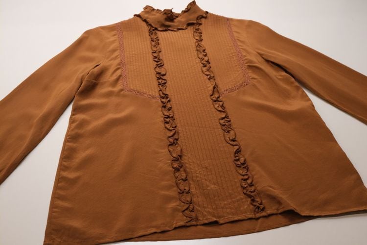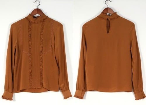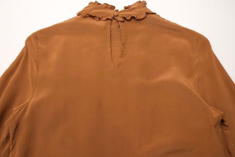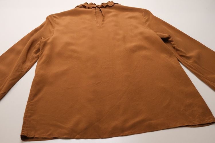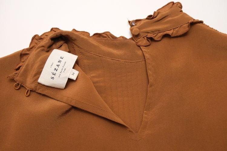 Sézane terracotta silk frill pullover Blouse