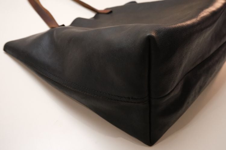 2006年"J.CREW"に買収された1937年創立アメリカのファッションブランド"Madewell"より、ツートーンカラーのレザートートバッグ。自然なシボの表情としなやかな風合いに優れた一枚革を使用し無骨な表情に仕立てられた、ユニセックスデザインの大判トートです。マチが深くA4サイズも余裕で収まるたっぷりの収納力に、吊り下げ型のジップポケットが付属し、ストラップは肩から提げられる長さがあります。全体的に使用感があり、ハンドルに変色や底の角に擦れなど見られますのでUSED品とご確認の上ご検討ください。使い込まれたレザーの風合いとしてお愉しみいただける方にお勧めいたします。すでに長年愛用してきたかのような茶芯レザーの味わいがコーディネートに深みを与え、日常使いに活躍してくれそうですね。