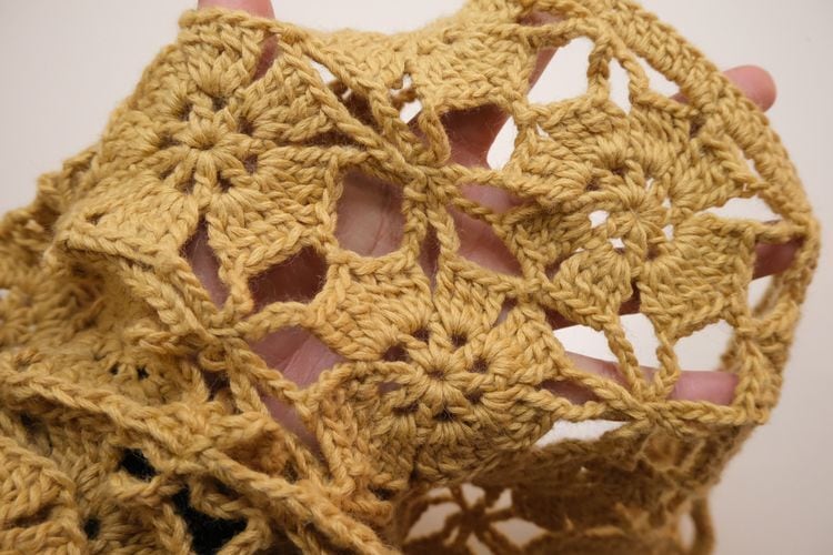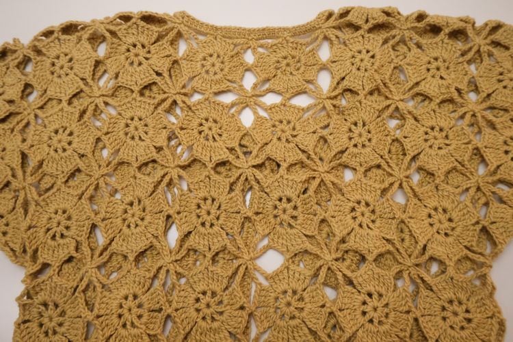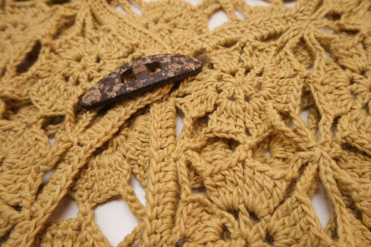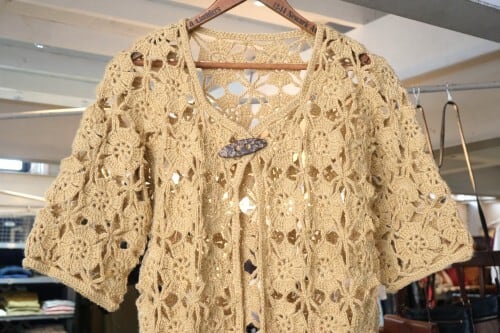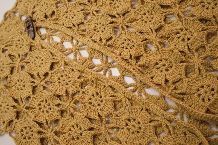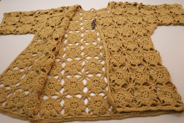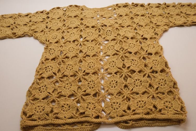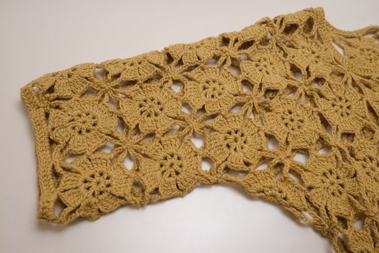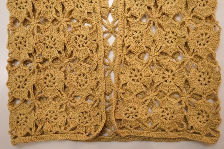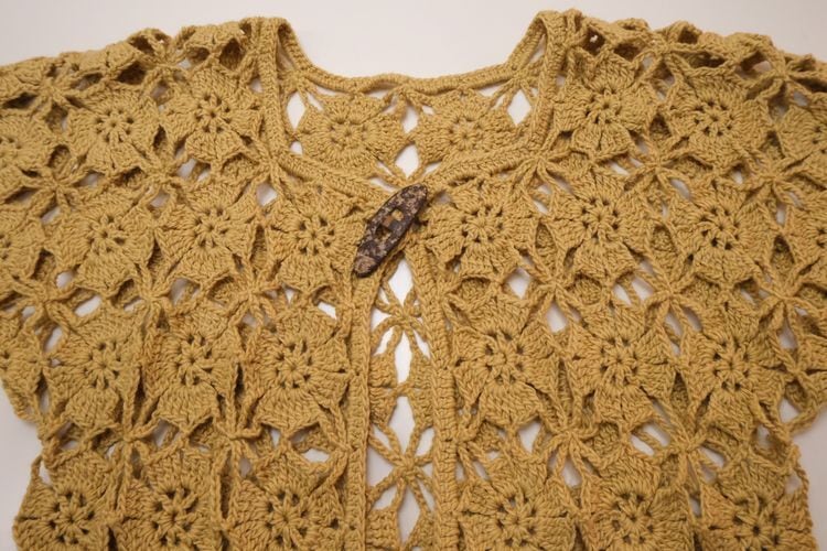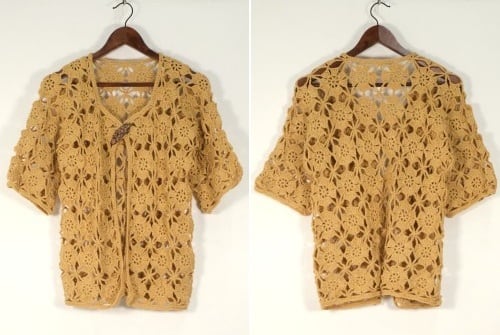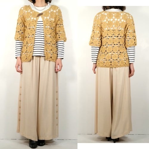 70's mustard hand-crochet half sleeve Cardigan