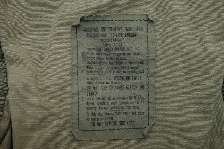 □label: QUALITY APPAREL MFG. INC./ DLA100-87-C-0420