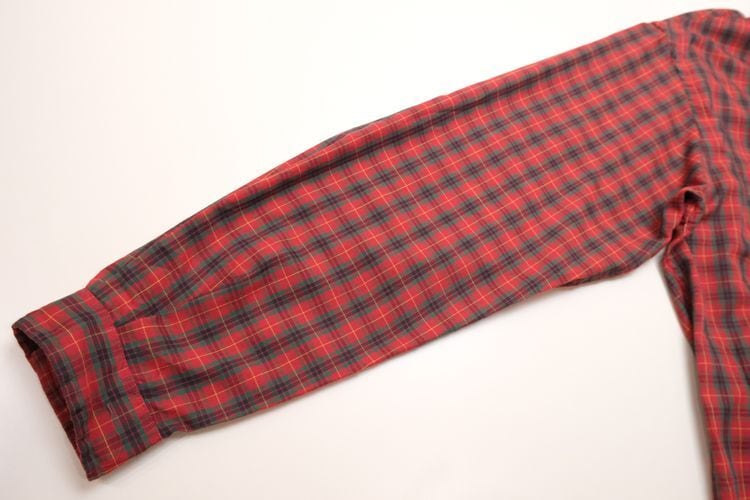 1949年コネチカット州ニューヘイブンで創業されたアイビー・ブランド"GANT"から80年代初期頃と思われるプルオーバー・シャツ。薄手でやわらかな肌触りのポリエステル×コットン(65/35)混紡素材を使用し、レッド×グリーン×イエローで構成されたトラディショナルなタータン・チェックが目を惹くアイテムです。ざっくりとした着用に適したボリュームあるシルエット、コットン・ツイルで切り替えた襟と胸ポケットのバイカラーがアクセントとなっています。着用の上で問題となるダメージや汚れはございませんが、全体的に着用感のあるUSED品ですのでご理解の上ご検討ください。幅広いボトムスにさらっと合わせるだけでプレッピー・スタイルを楽しむのができるおすすめの1本です。