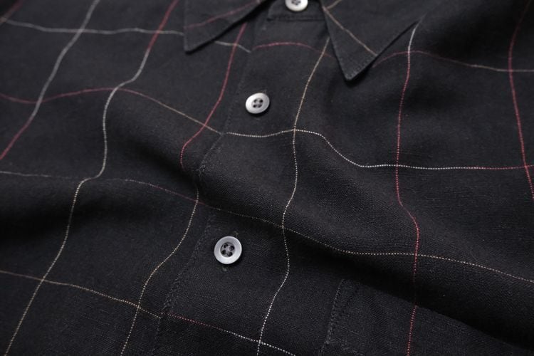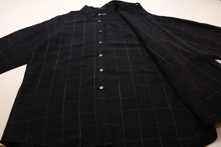 90's GEOFFREY BEENE linen × rayon windowpane Shirt
