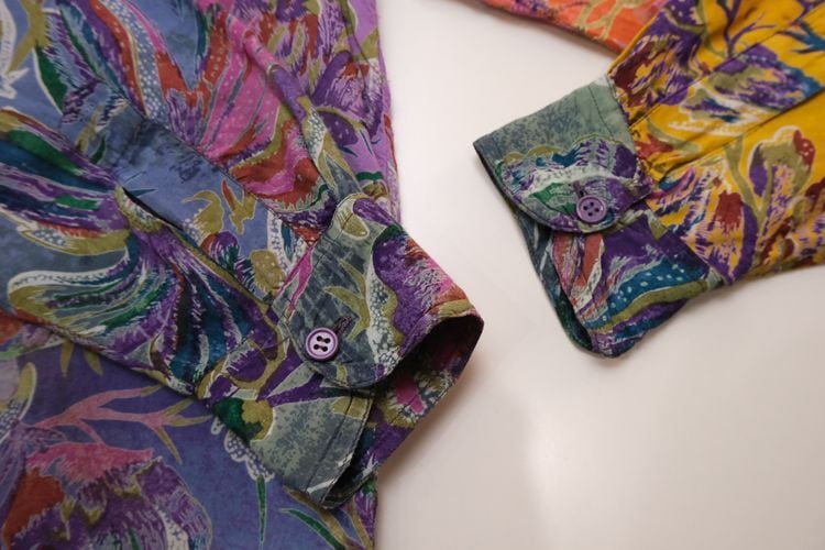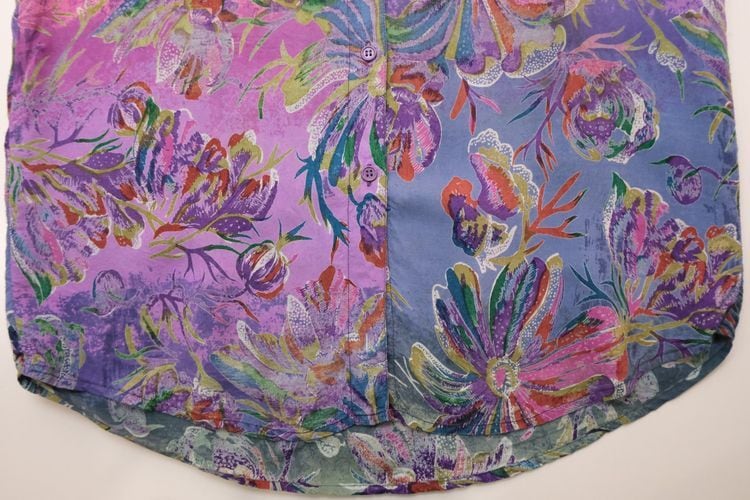 90年代グラデーションボタニカル柄のレーヨンシャツ。色鮮やかなグラデーションカラーに溶け込むボタニカルプリントが素敵なロングシャツです。長めの着丈が特徴のゆったりシルエットに、プリントが映えるデザイン。くたりと肌に馴染むレーヨンの柔らかな素材感が雰囲気良く、ロングシーズンお楽しみいただけます。コンディションとして多少の着用感があり、右前肩に生地のリペアが見られますのでUSED品とご確認の上ご検討ください。オーバーサイズの着こなしもバランス良く、リラックススタイルを個性的に彩ります。