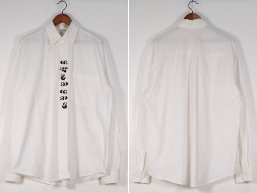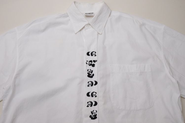 90's REYWEAR Panda embroidered fly front cotton Shirt
