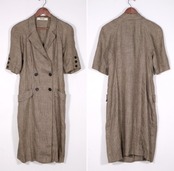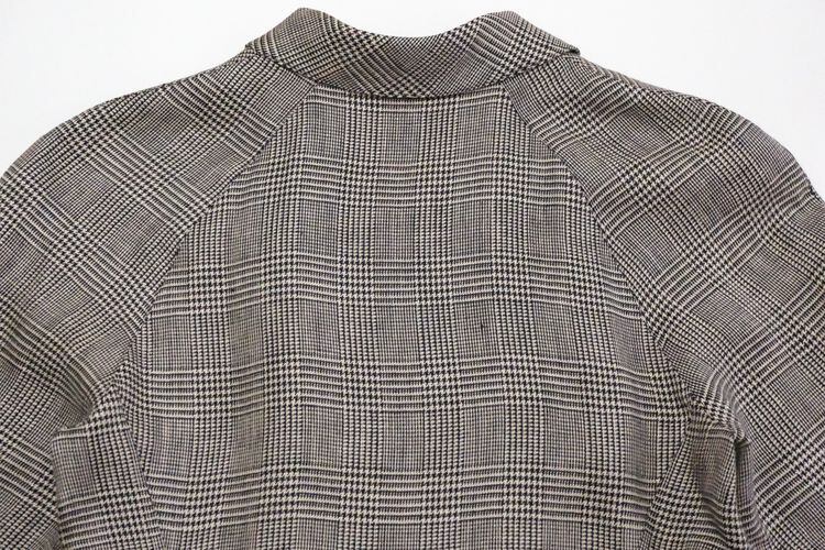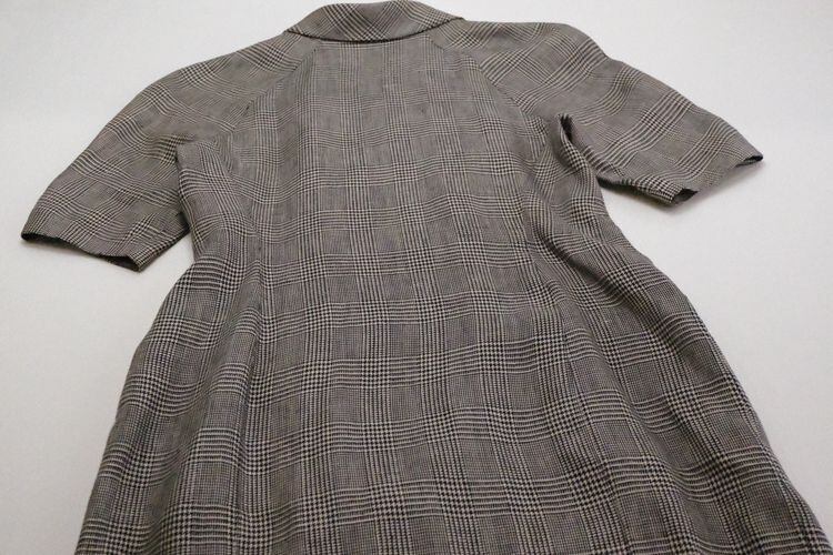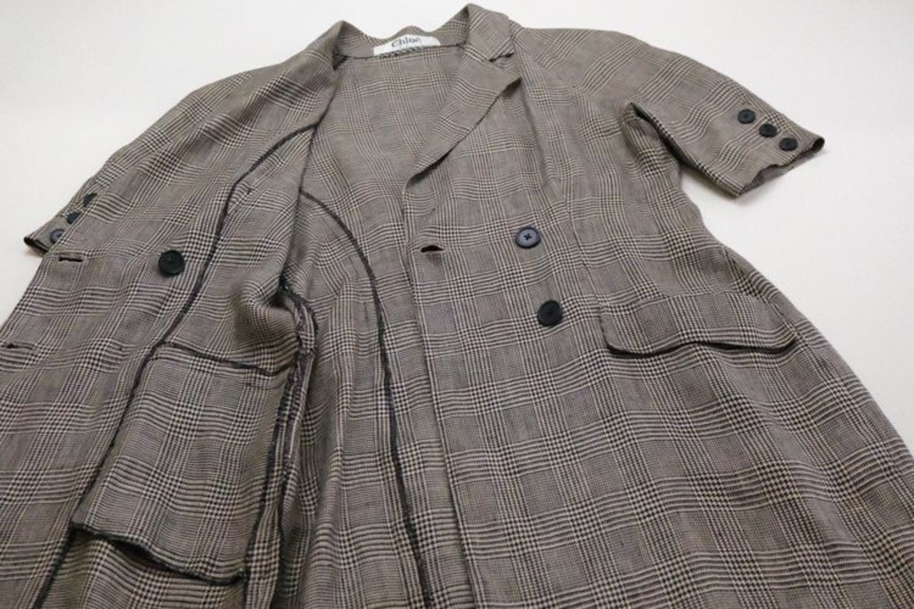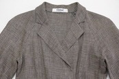 1952年設立フランスのラグジュアリーブランド Chloé より、80年代グレンチェック柄リネンのブレザードレス。メンズライクなダブルジャケットスタイルを女性らしく仕上げた、シルエットの美しさが際立つアイテムです。品の良い光沢感が特徴の素材はおそらく100%リネンと思われ、裏地はなく肌触りの良さと着心地の軽さも魅力となっています。コンディションとして多少の着用感があり、下のフロントボタンのすぐ傍にシミが一カ所見られますのでUSED品とご確認の上ご検討ください。クラシックなテイストが現代に新鮮にうつり、一枚で洗練されたスタイルが完成します。