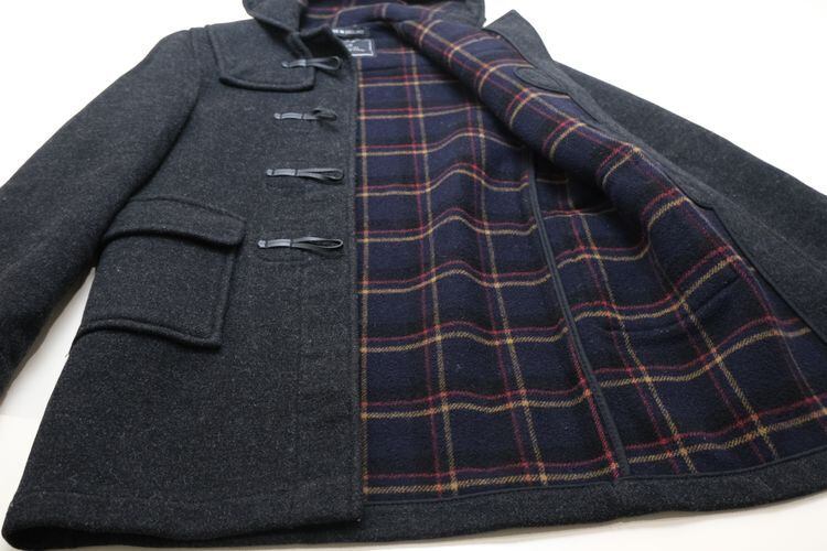 1951年創業ダッフルコートのトップブランド Gloverall より、90年代イングランド製のトラディショナルダッフルコート。コンパクトなサイズ感のスリムフィット・シルエットが特徴の一品です。グレー無地の表地×チェック柄裏地のダブルフェイス生地を使用したクオリティの高さ、レザー紐に水牛トグル、パンケーキフードなど、Gloverall ならではのディテールが詰まった伝統的な佇まいが目を引きます。とくに目立ったダメージはございませんが、多少の着用感が見られますのであくまでUSED品とご理解の上ご検討ください。ダークトーンにまとまったカラーリングはコーディネートを選ばず、軽快なショート丈はデイリーに活用しやすく、小柄な方にもバランス良く着用いただけます。