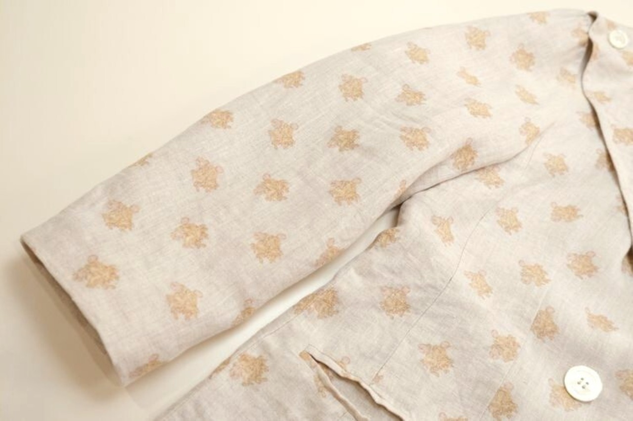 80年代花柄リネンのダブルジャケット。ざっくりとしたオーバーサイズのルーズなシルエットに淡い花柄のリネン素材が気取らない雰囲気のアイテムです。深いVネックにダブルボタン、肩にボタンが並んだフロントのみのラペルが特徴的なデザイン。薄手のリネン生地にフルライニング付き、軽くスムースな着心地でお楽しみいただけます。コンディションとして右肩フロント表面と同じ位置の裏地に大きな生地のリペア、背中中央と左袖などに薄い色抜けなど見られますのでUSED品とご確認の上ご検討ください。作りはテーラードながら抜け感のある表情がカジュアルに着やすく、ロングシーズン活躍してくれそうです。