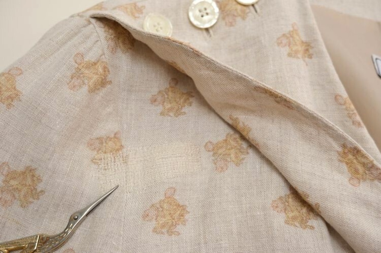 80's floral linen double-breasted light Jacket