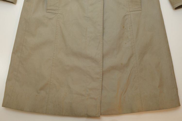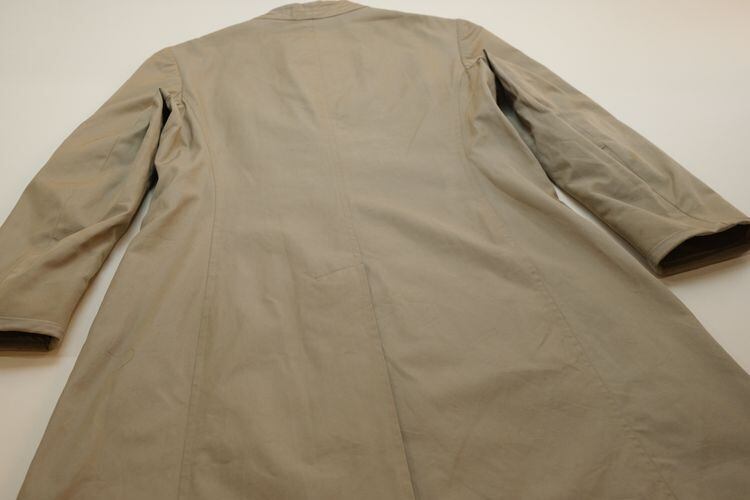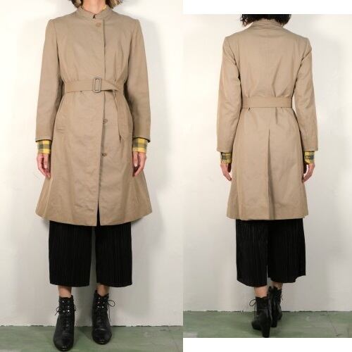 60年代バーバリーズのスタンドカラーコート。ヴィンテージならではの色味や風合い、無造作に使い込まれて生み出された唯一無二の表情に魅力の詰まった一品です。オリジナルはカスタムメイドによるセットインスリーブのステンカラータイプで、襟をスタンドカラーに変更、袖口にはパイピングのリメイクが加えられています。コットンツイル生地は古い年代特有の風合いに優れ、裏地はたいへん珍しいカラーリングのチェック柄になっています。全体的に着用感が強く見られ、両袖口や裾口、フロントポケット下辺りに経年したシミが多数点在し、裾の角の生地に擦り切れなど見られますのでUSED品とご確認の上ご検討ください。古いものの風合いとしてお愉しみいただける方、人と違ったものをお探しの方にお勧めいたします。風格あるヴィンテージ・バーバリーズも気兼ねなく着用いただけ、さらに洗い込んでオリジナリティある表情に仕上げていくのも格好良いですね。