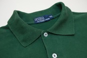 1972年の登場以来、アメリカン・スタイルのアイコンとして高い人気を誇る Ralph Lauren のポロ・シャツ。表面に独特な凹凸ができる鹿の子(100%コットン)を使用し、明るめのグリーンの色味に爽やかな雰囲気を感じるアイテムです。袖や身幅がやや細いすっきりとしたシルエット、右袖に入る"3"パッチ、そして左胸に施されたラルフ・ローレンのロゴではない3頭からなるポロ競技のカラフルな刺繍が珍しい仕上がりとなっています。着用の上で問題となるダメージや汚れはございませんが、全体的に着用による毛羽立ちがあるUSEDコンディションですのでご理解の上ご検討ください。シンプルなパンツにさらっと合わせるだけで個性的なコーディネートが演出でき、表記"XXL"ですがおそらくボーイズ・サイズと思われる小さめですので男性に限らず女性にもおすすめです。