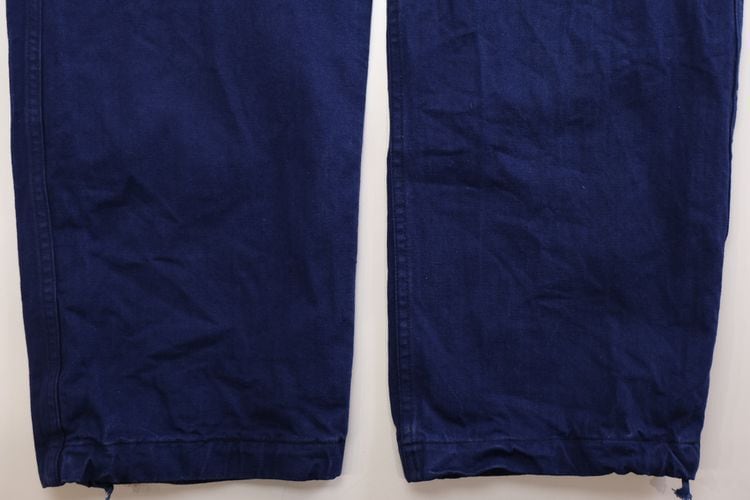 80年代ドイツ軍ヘリンボーンツイルのカバーオールズ。小柄な男性や女性向きの、稀少な小さめサイズの一品です。ボタンアップ仕様のフロントのスタンダードなワークスタイルが詰まったディテール。本来は貫通ポケットですが、当店でポケットをカスタムしておりますので、一枚でも着用いただけます。ウエストとパンツ裾口には引紐が付き、フィットを調整できます。中厚手のヘリンボーンツイル生地は深いブルーの色みが雰囲気よく、100%コットン素材のため着用と洗いを繰り返していくと増していく味わいを期待できます。コンディションとして多少の着用感があり、生地の縁に色落ちが見られますのでUSED品とご確認の上ご検討ください。ワークウェアとしてはもちろん、ファッションアイテムとしてもデイリーに楽しみたいアイテムです。