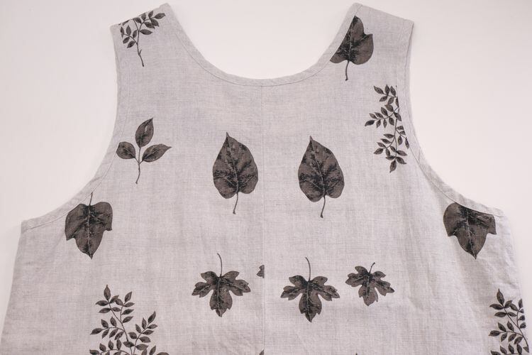 80年代リネン×コットンのノースリーブドレス。様々な種類の葉っぱのイラストを散りばめた、抜け感のあるデザインが素敵なマキシドレスです。さっぱりとしたタンクトップに、裾にかけて僅かに広がるAラインシルエット、たっぷり長いマキシ丈が特徴です。リネン×コットン混紡の生地は自然な風合いに優れ、涼し気でリラックスした着心地が魅力です。コンディションは良く、とくに目立ったダメージは見られません。一枚でもインナーに重ねてジャンパードレスとしても着用いただけ、さりげなく個性を演出できる一品です。