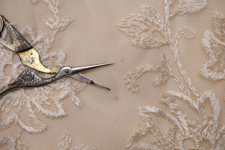 70年代総刺繍のレーシースカート。花モチーフの大判刺繍が可憐な印象のヴィンテージスカートです。メッシュとクレープ生地の2枚仕立てにサテンのウエストベルト、ロング丈のフレアシルエット。ボリューム抑えめのため甘くなり過ぎず、真っ白ではない柔らかなアイボリーベージュが好印象です。コンディションとして全体的に経年感があり、フロント中央左寄りや左右裾付近など複数か所にシミが見られますので年代もののUSED品とご確認の上ご検討ください。デイリーにもパーティーシーンにも馴染み、アメリカヴィンテージならではのデザインをご堪能いただける一品です。