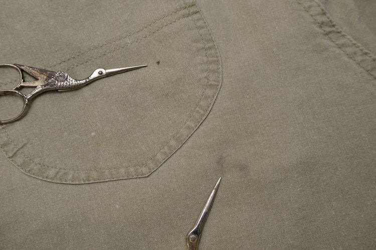 80年代コットンキャンバスのタック入りデザインパンツ。チノパンでもデニムでもないこなれた素材感に、馴染んだ絶妙の色みが雰囲気の良いアイテムです。股上が深いハイウエストフィットにワンタック入り、ゆったりめのテーパードシルエット。フロントのダブルボタンや腰の2色使いの切り替え、ワークスタイルの大きなヒップポケット、ブランドタグがアクセントになったデザイン。薄手のコットン生地はくたりとルーズな表情を生み、軽量で動きやすい穿き心地も魅力です。全体的に着用感が強く、右前腿や右後ろ股下、左ヒップなどにシミが点在し、右ウエスト縁に生地の傷みなど見られますのでUSED品とご確認の上ご検討ください。使い込んだ味わいとしてお愉しみいただける方にお勧めいたします。季節を問わずに着用いただけ、ベーシックの着こなしにさりげなくスパイスを効かせてくれそうです。