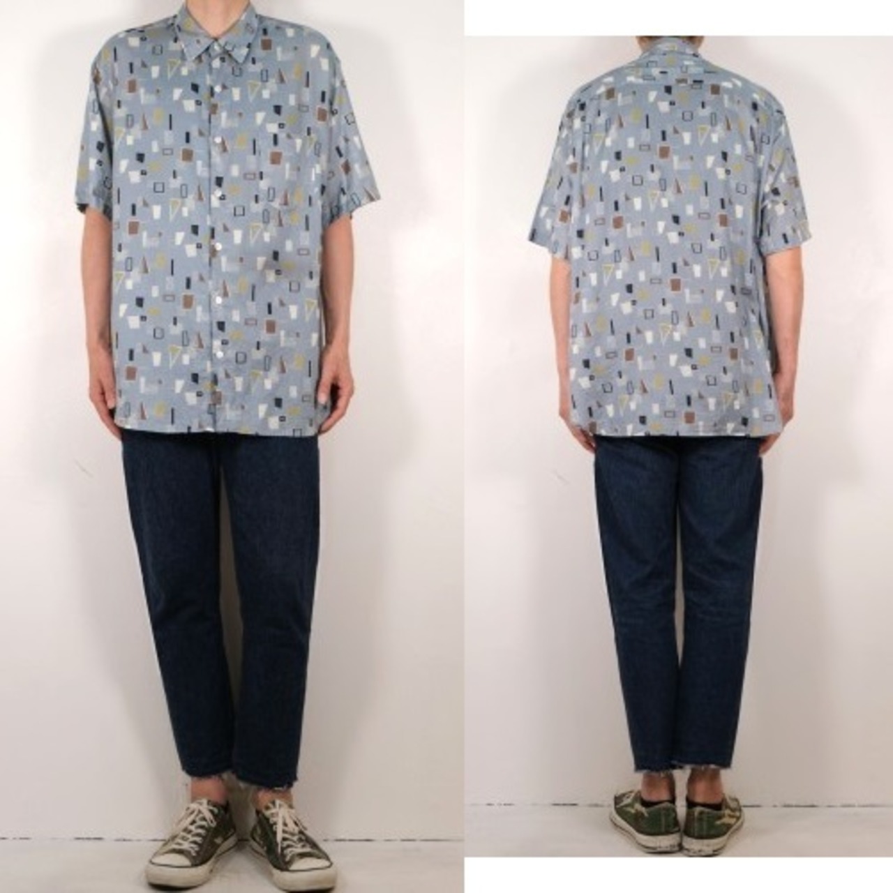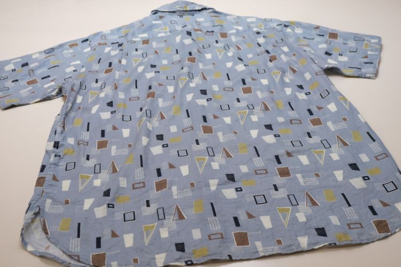 1999年にオリジナル・コレクションとして誕生したニューヨークを代表するブランド"Steven Alan"『スティーブン・アラン』から日本製の半袖シャツ。薄手でやわらかな肌触りの100%コットン(表記なし)を使用し、ライトブルーの淡い色味に幾何学模様を散りばめた柄がたいへんカジュアルな雰囲気のアイテムです。首まわりをすっきりと見せた小ぶりな襟、ざっくりとしたボリュームのあるシルエットと身体のラインにくったりと馴染む着心地の良さも魅力となっています。着用の上で問題となるダメージや汚れはございませんが、左腹部に薄っすらとした汚れ、全体的に着用による色褪せや毛羽立ちのあるUSEDコンディションですのでご理解の上ご検討ください。カジュアル感もありながら発色を抑えた落ち着いた色味がたいへん良く、程よい大人っぽさで着用していただける1本です。