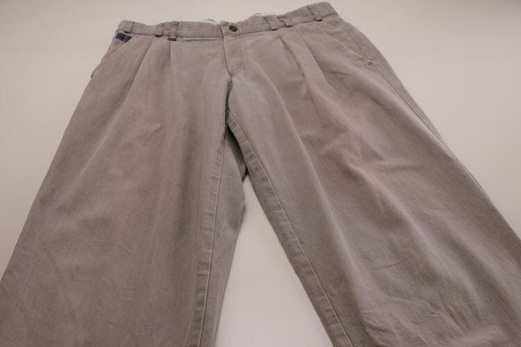 80年代コットンのタック入りワイドパンツ。こちらはメンズのスラックスですが、丈が短めに詰められており、女性か小柄の男性にお勧めの一品です。ミドルライズにツータック入り、裾までゆったりとしたワイドシルエット、右腰のブランドタグがポイントになったディテール。2%伸縮素材を混紡した生地は、デニムに近い風合いと柔らかな肌触りが特徴で、洗いこなれた中間色の色みも雰囲気の良い仕上がりになっています。コンディションとして全体的に着用感が強い見られ、フロント合わせの角やポケット縁、裾口などに生地の擦り切れ、内側の生地に変色など見られますのでUSED品とご確認の上ご検討ください。抜け感のある表情はカジュアルな着こなしに馴染み、シーズンレスにお楽しみいただけます。