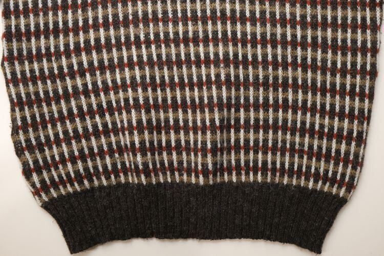 ノルウェーの伝統的なセーターをベースにデザインされた"kaare giose"から80年代頃のノルウェージャン・セーター。ウール×ポリアミド(75/25)の混紡毛糸をミドルゲージでしっかりと編み立てた素材感の良さに、チャコールブラウンをベースにホワイト×キャメル×レッドを組み合わせたストライプ×ボーダー柄がカジュアルな印象のアイテムです。着用の上で問題となるダメージや汚れはございませんが、全体的に毛羽立ちのあるUSED品ですのでご理解の上ご検討ください。幅広いコーディネートにさらっと合わせることのできる使い勝手の良さで、1本持っているとたいへん重宝するおすすめのセーターです。
