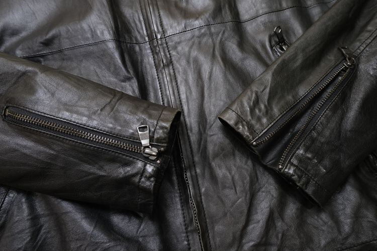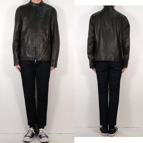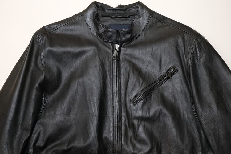 1978年にカリフォルニア州ミルバレーで創業された"BANANA REPUBLIC"からシングル・ライダース・ジャケット。薄手でしなやかなシープ・スキンを使用し、内側のボディにキルティング加工のライニングが張られた温かな着心地のアイテムです。ほんのりとウエストがシェイプされた美しいシルエット、ジップアップ・フロント、ネック・ラインのボタン・タブ、ジップ付きの胸ポケットとスラッシュ・ポケット、ジップ・カフス、脇下のベンチレーションなどクラシックなデザインで仕上げられています。着用の上で問題となるダメージや汚れのない良いコンディションですが、全体的に着用感のあるUSED品ですのでご理解の上ご検討ください。バイクを乗られる方にはもちろん、すっきりとスマートなシルエットとシンプルなデザインはタウンユースの着用としてもたいへんおすすめです。※発送の際は畳んでの包装となりますのでご了承ください。